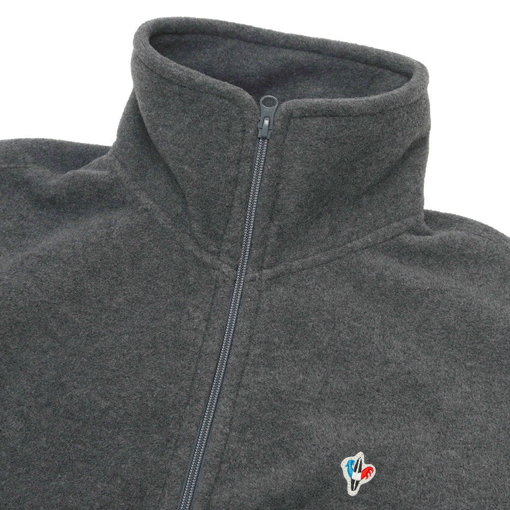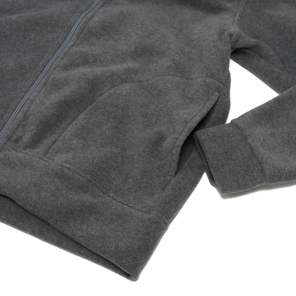 ダブルジップ仕様のフリースジャケットでマフラー代わりに襟を立てても良しと状況に応じての形状変化で軽くて柔らかく暖を取る事が出来るアイテムです。アウターにもインナーとしても仕様が可能なので、ロッジウェア的なインドアとアウトドア問わず利便性に優れたジャケットです。