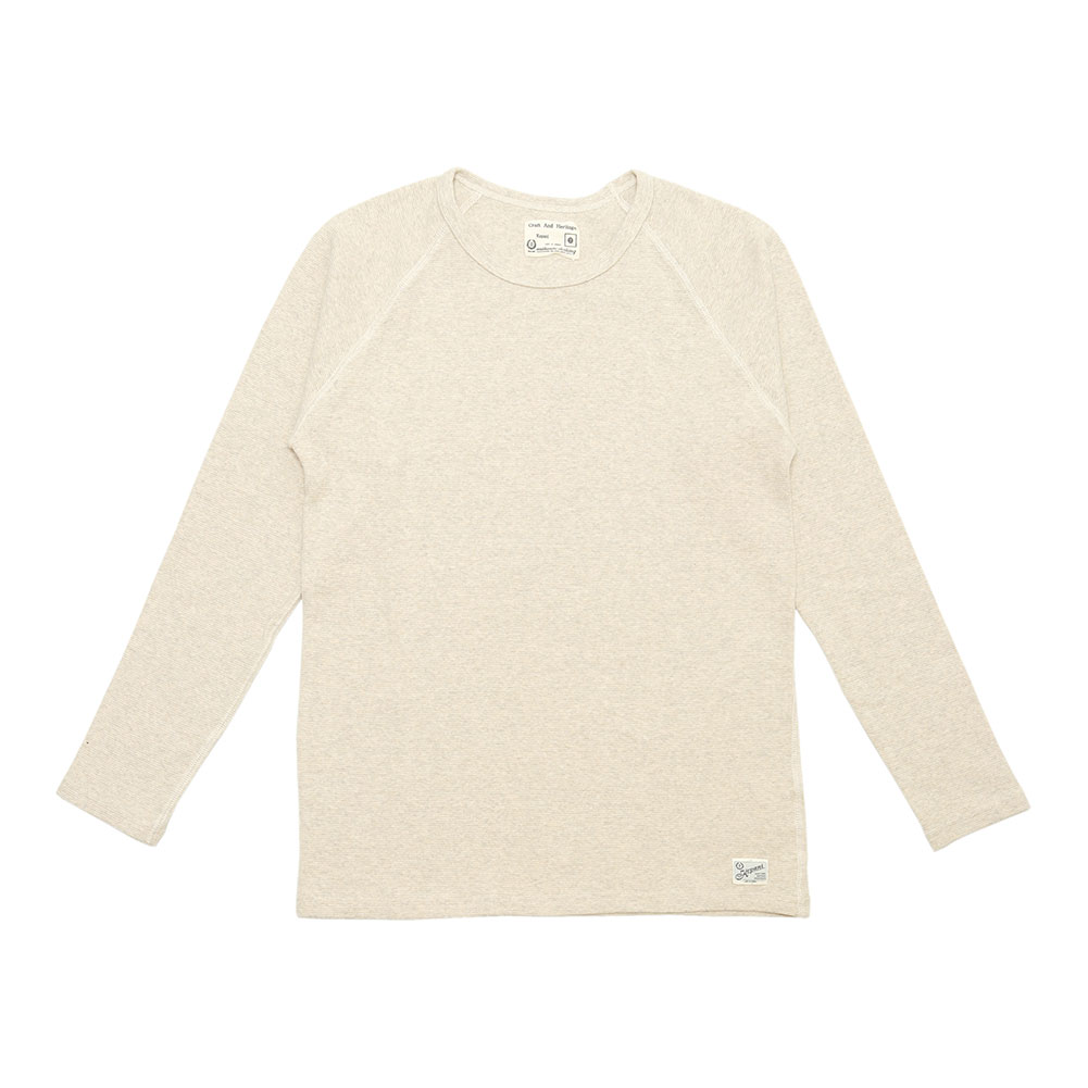 Kepaniの定番スエットでも使用しているラフィ糸と、ストレッチ糸を交互に編み上げた素材を使用し、伸縮性がありとても柔らかく、肌触りの良いカットソー。