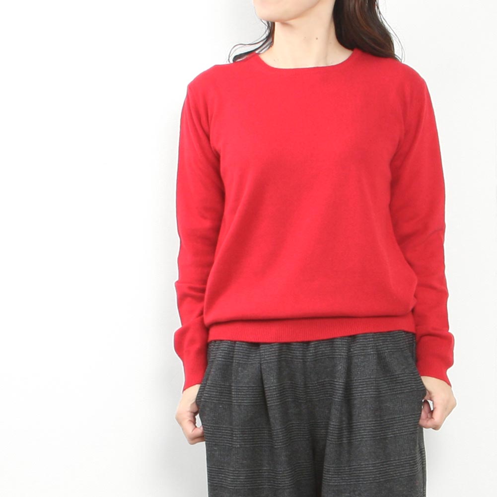 ふんわり柔らかなカシミヤ混のクルーネックニット。