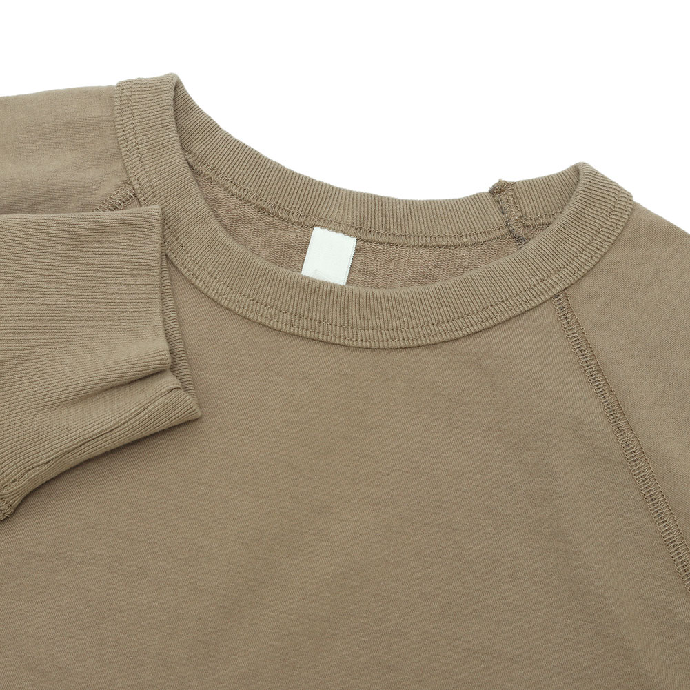春先に1枚でサッと着られる薄手の裏毛スウェット。ラグランに入ったロックのステッチがアクセントになっています。
