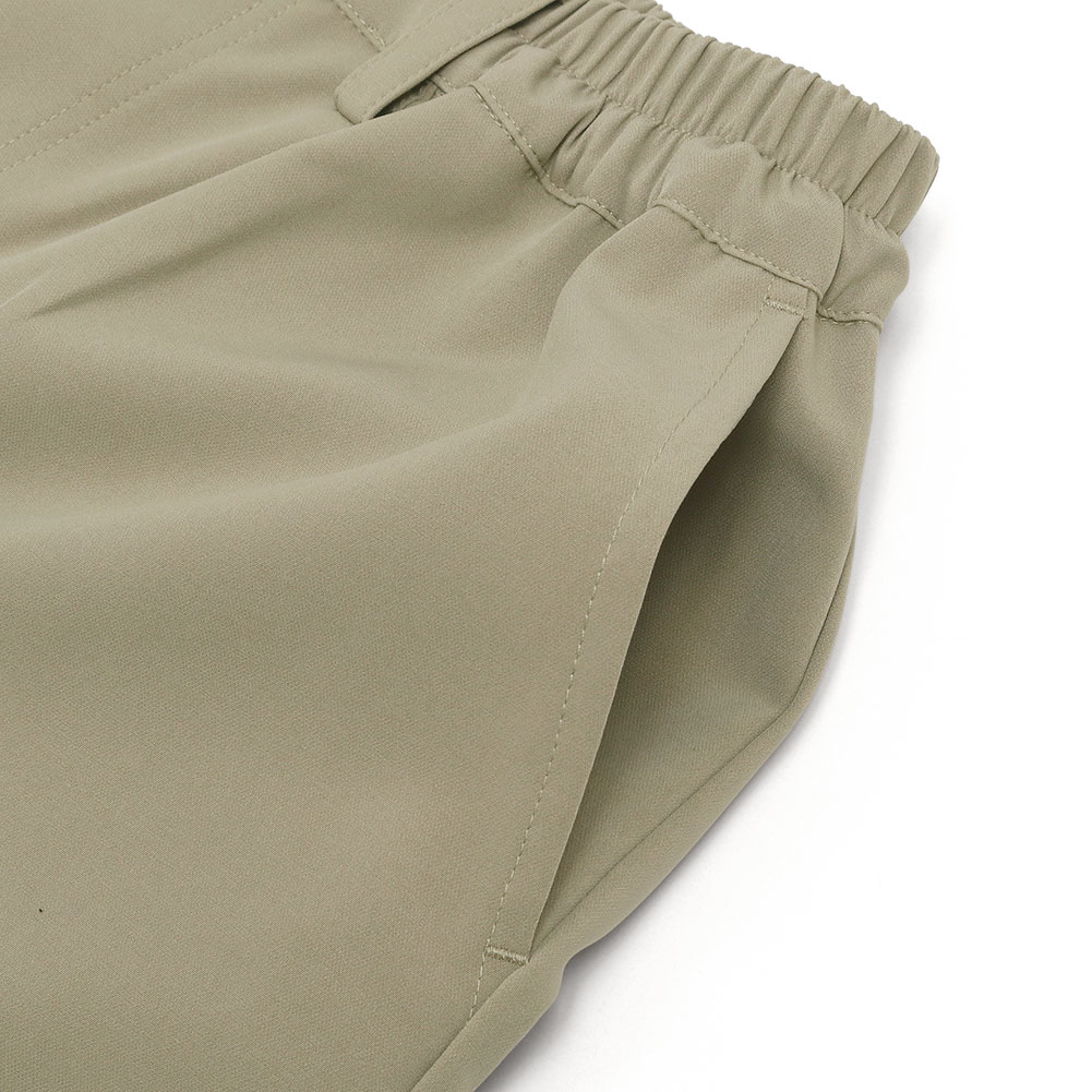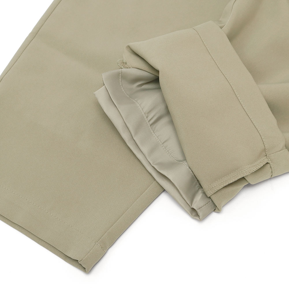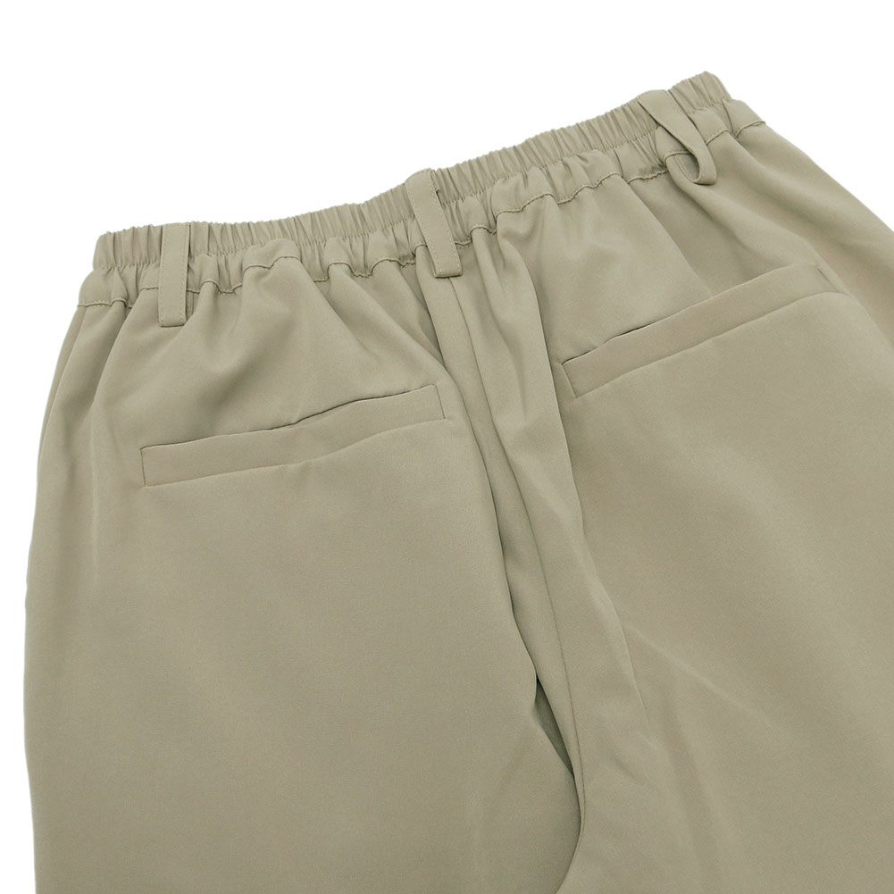 ヒップや太ももはゆとりがあるリラックス感のある穿き心地ながら、タックが入っていないスッキリとしたシルエットです。