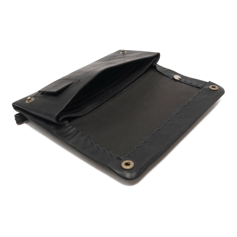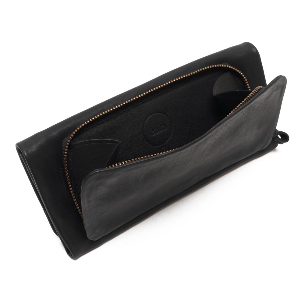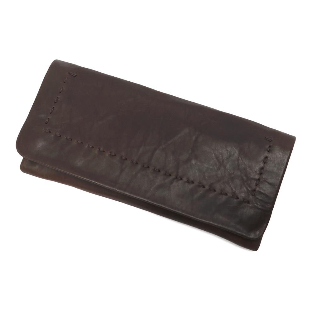 軽くて大きすぎない長財布。 小銭入れは外に中はシンプルな作りで使いやすそうです。牛ソフトは渋なめしの限界の薄さまで薄くした革で柔らかくハリがあり、とても軽いのが特徴です。 独特の光沢があり、使用していると艶がでてきます。 本来の質感を大切にしているので使用していると細かい傷がつきますが、ずっと愛用していただくと傷も馴染んでくる革になっています。
