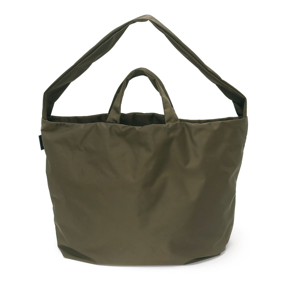 ステッチレスのすっきりとしたデザインと、軽く上品な素材感が特徴的なトートバッグ。手持ちと肩掛けのどちらでも使える2WAY仕様になっています。