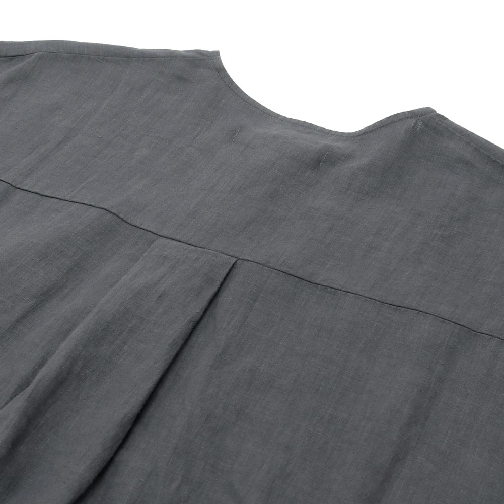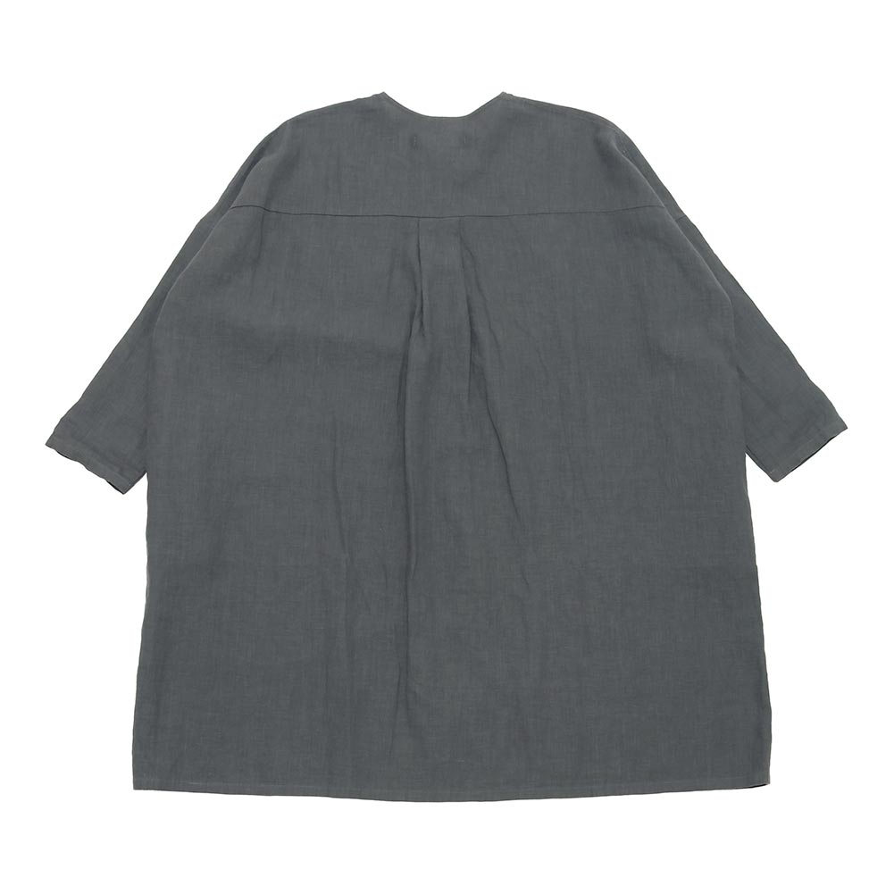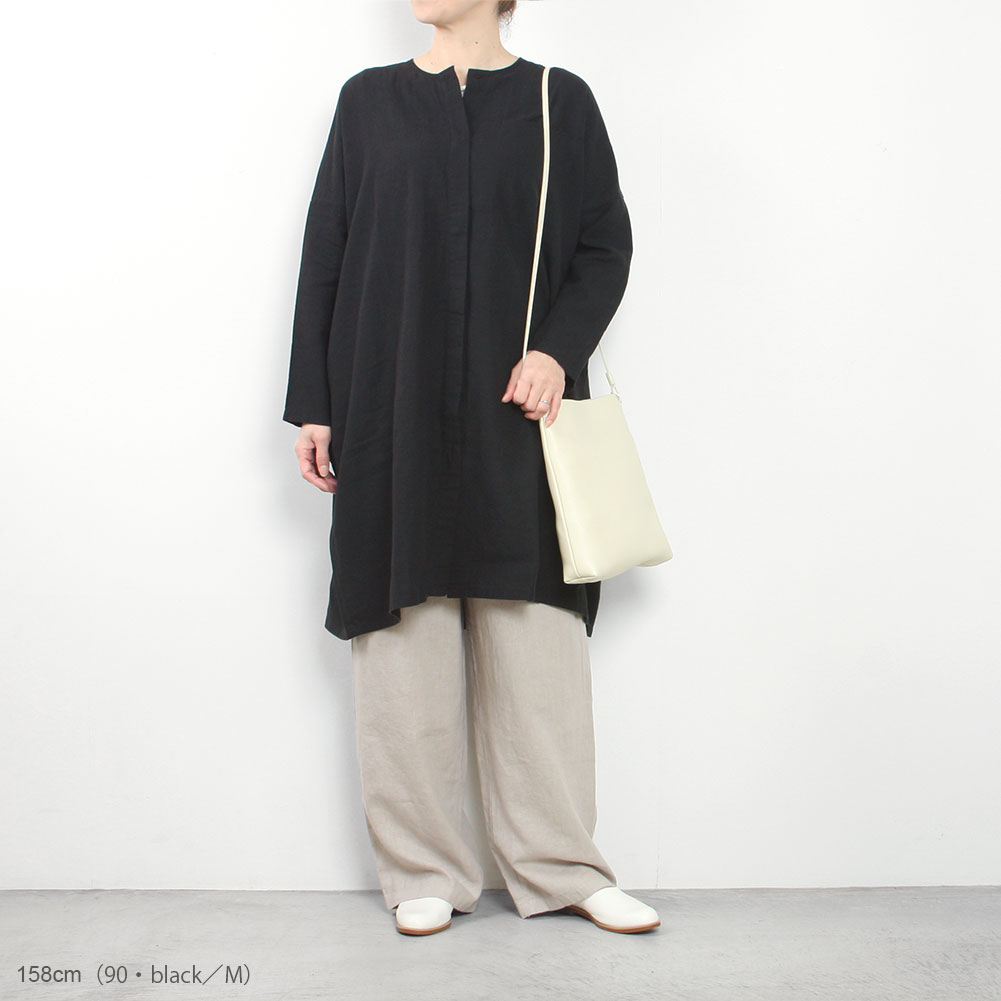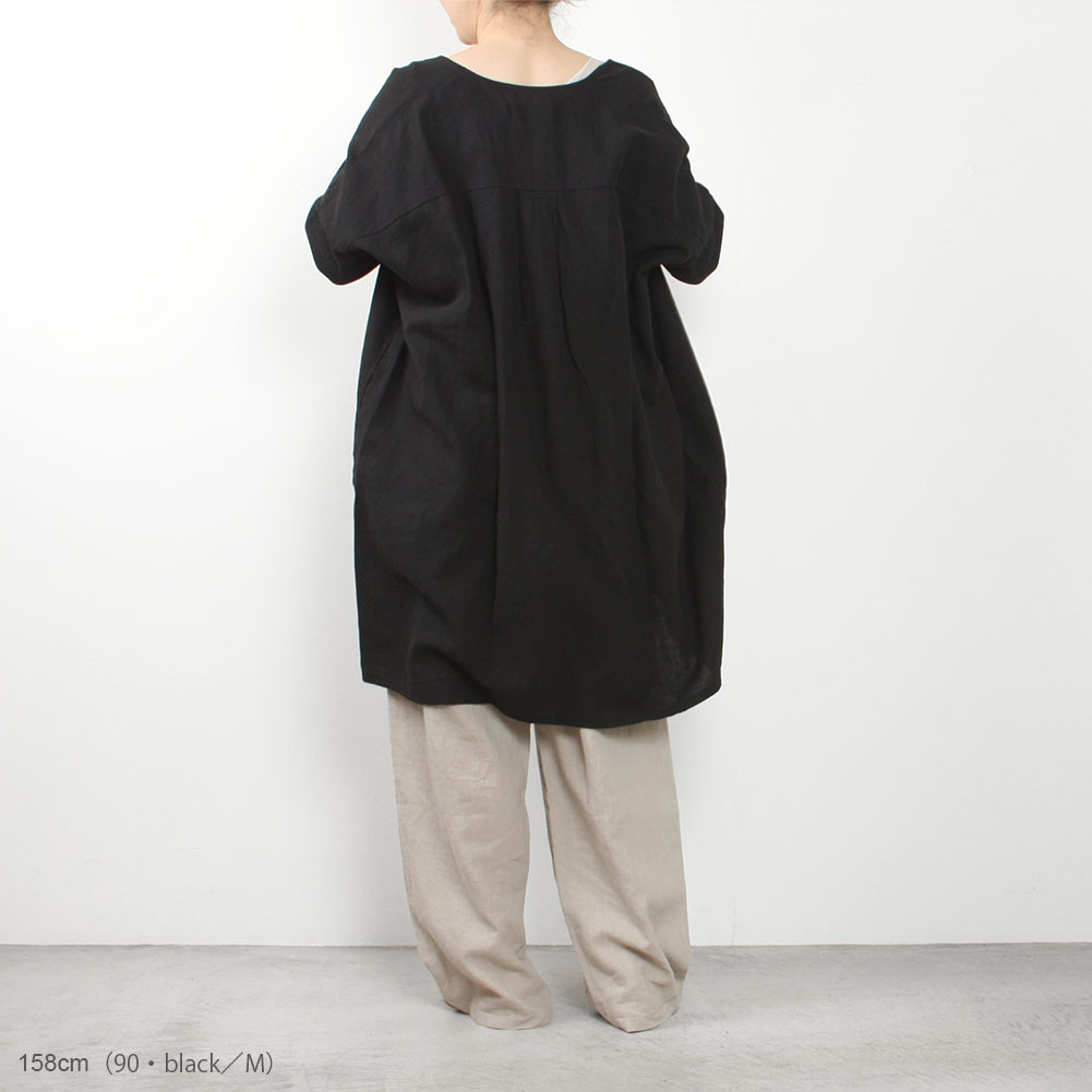 涼しげなチュニックは、ボタンを開けて羽織として使うのもおすすめ。ゆったり着ることができるリラックス感のあるシルエットは、ポケットがさりげないアクセントに。シーズン長く着回すことができる長袖です。