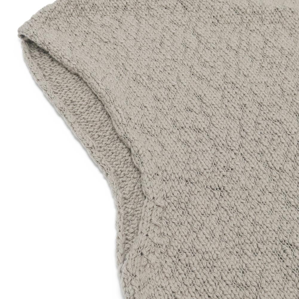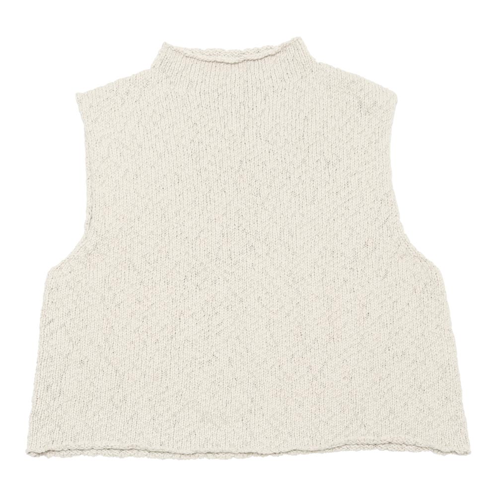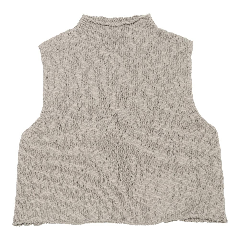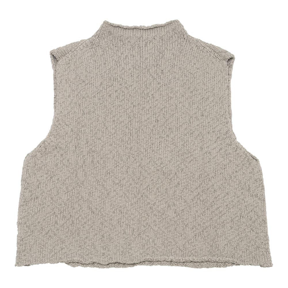 ざっくりとした風合いのコットンベスト。ふくらみのあるオーガニックコットンの糸を使用し、軽く柔らかな着心地に仕上がっています。ショート丈のベストは、薄手のニットやカットソー、シャツなどとレイヤードをお愉しみください。