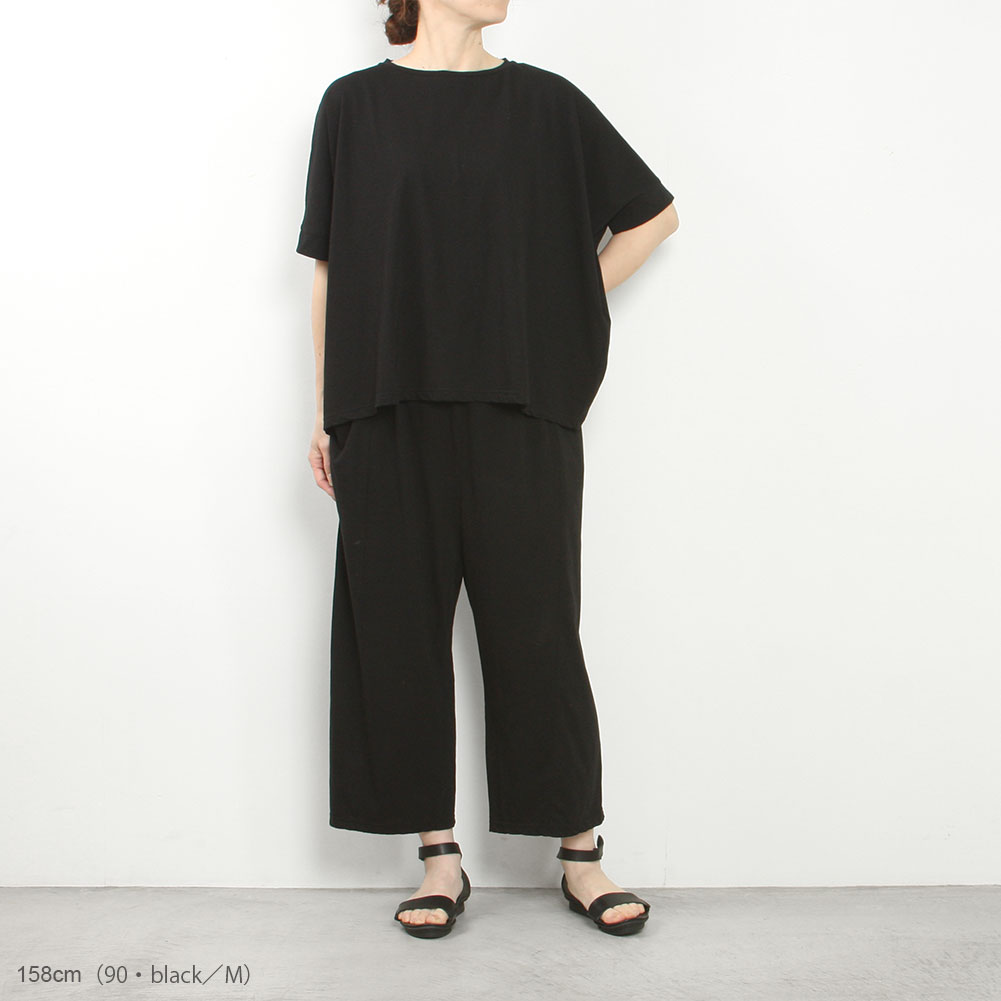 ほんのり光沢感のある、なめらかな手触りのプルオーバー。ワイドなシルエットは身体のラインを拾わず、一枚で着ても様になります。カットソーならではのリラックスした着心地が、これからの季節に活躍しそうです。