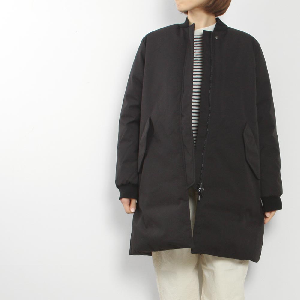 アウターの定番として根付いたMA-1をベースに、着丈や肩幅のバランスを調整しナチュラルなAラインシルエットで仕上げたモンジー。ポケットのサイズ、首元や袖口のリブのテンションや幅など細部に拘りシルエットを活かすためにダウン量も調節されています。ノンキルトタイプで表地には上品な光沢やハリ感が魅力のポリエステルギャバジンを使用し、シーンやスタイルを問わず着る事が出来る洗練されたダウンジャケットです。