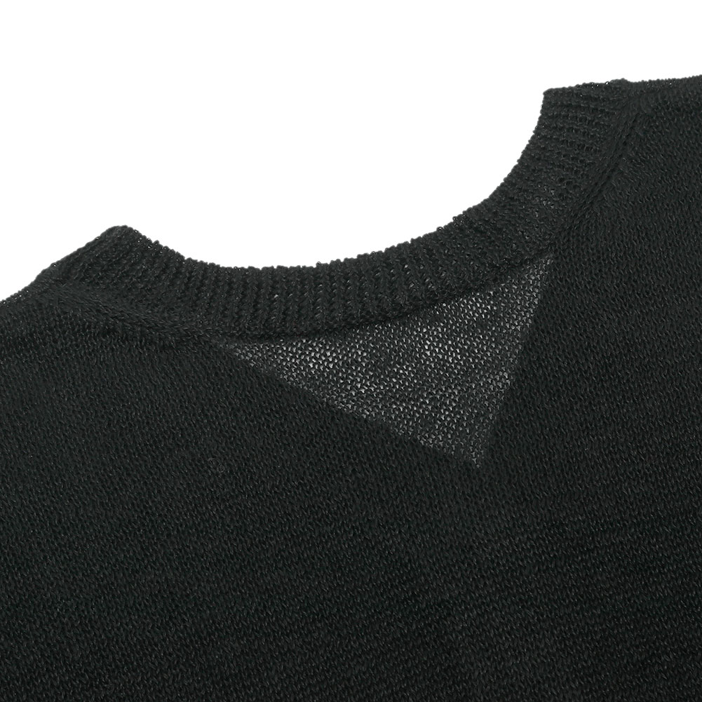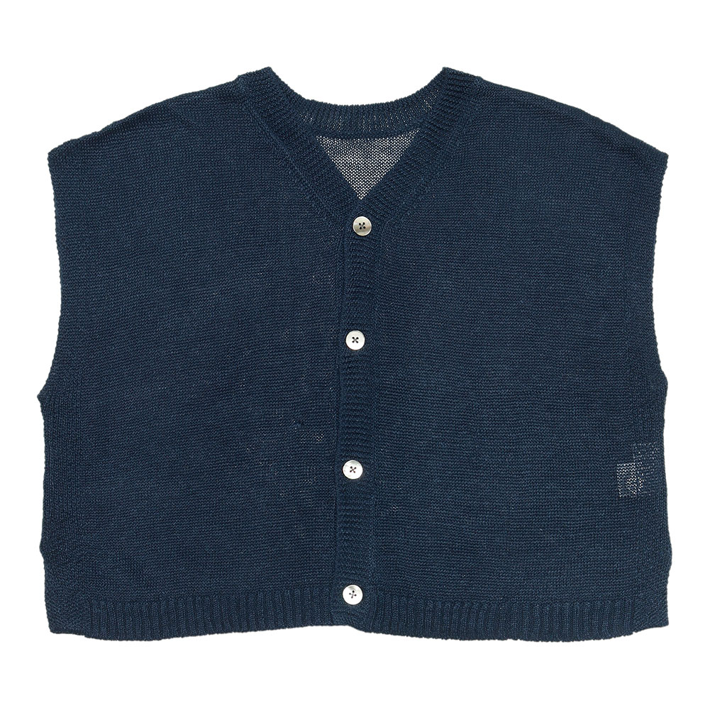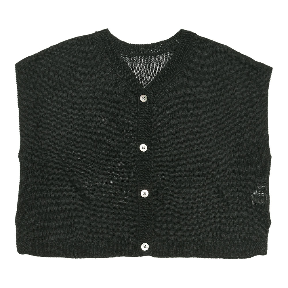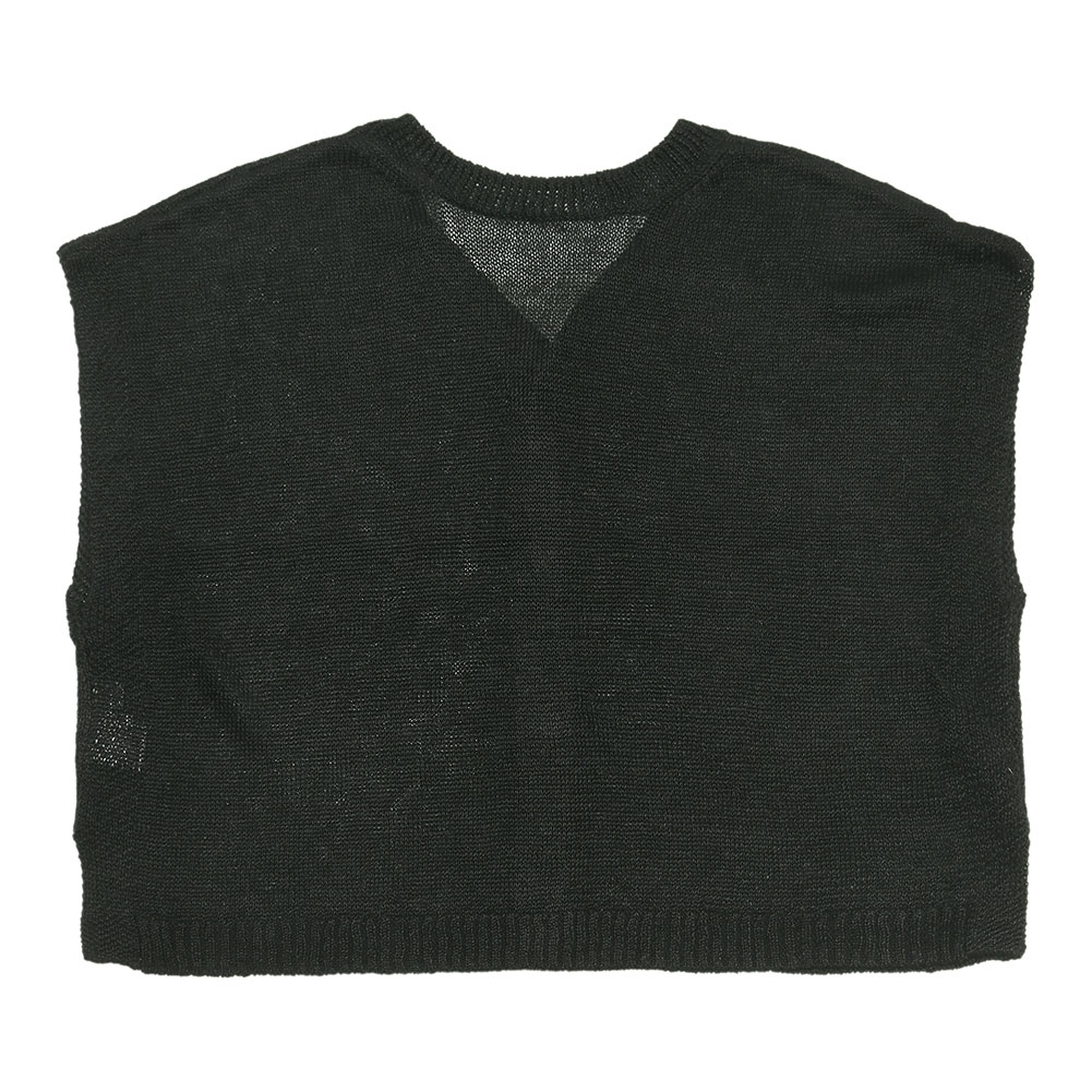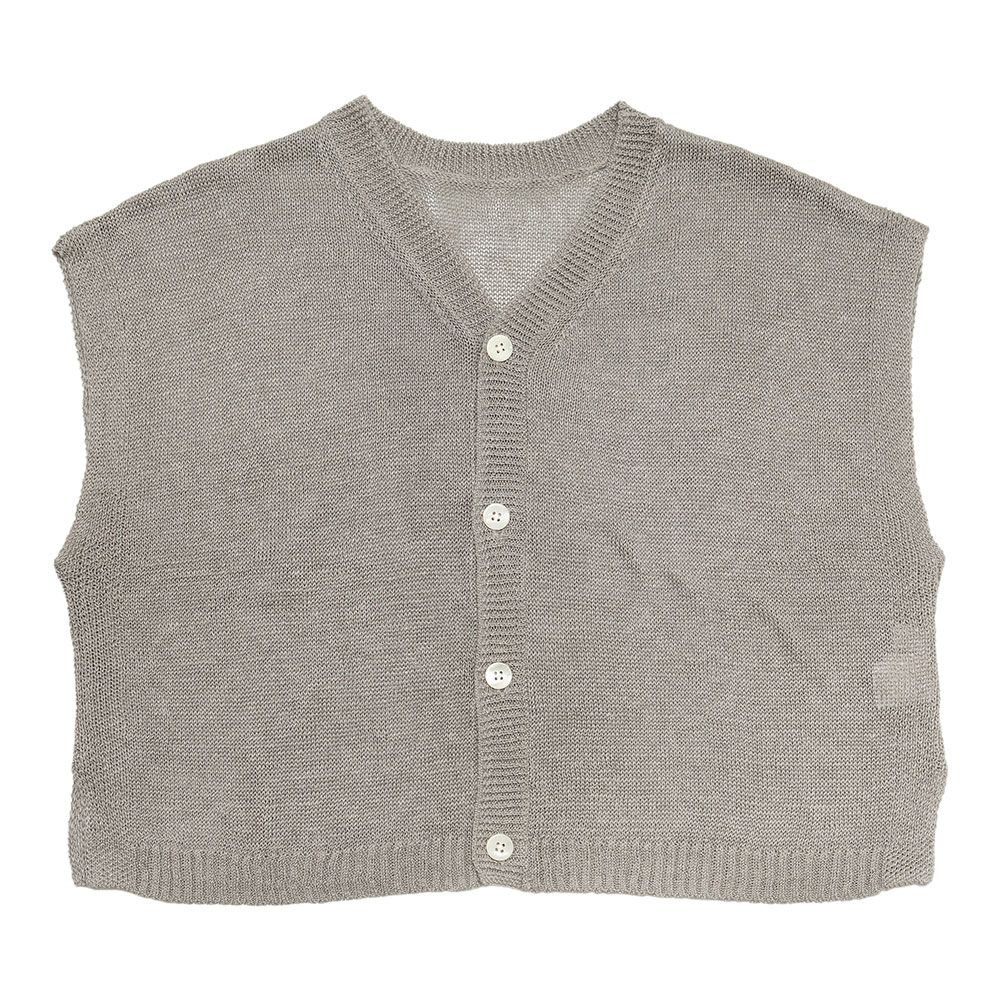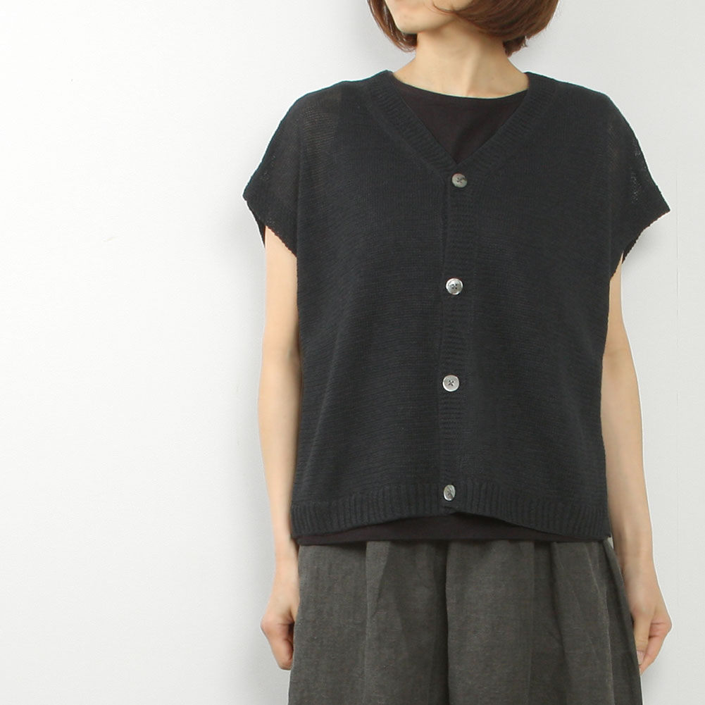 テロっとしたリネン素材で落ち感のあるベスト。肩から少しお袖が落ちるので、フレンチスリーブでも着られます。
