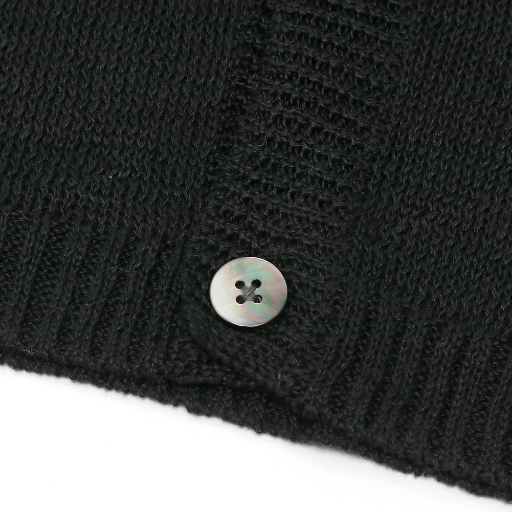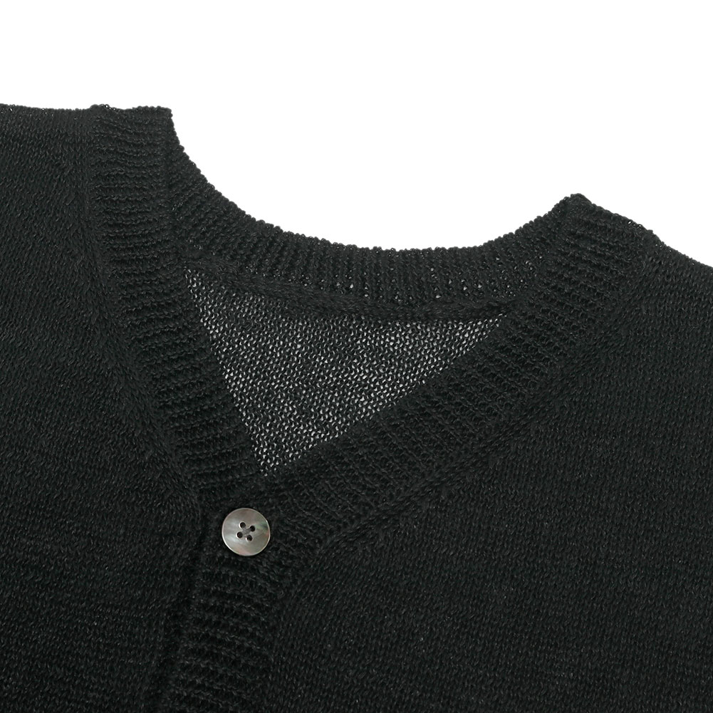 前後どちらでも着られる2WAY仕様なので、色々なアイテムに重ね着出来そう。ボタンを後ろにすると背中がVに開くので女性らしく着られそうです。アームも大きく開いてます。