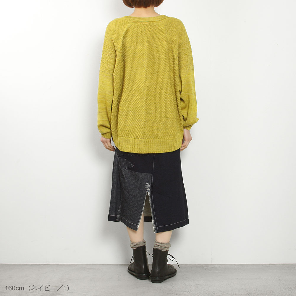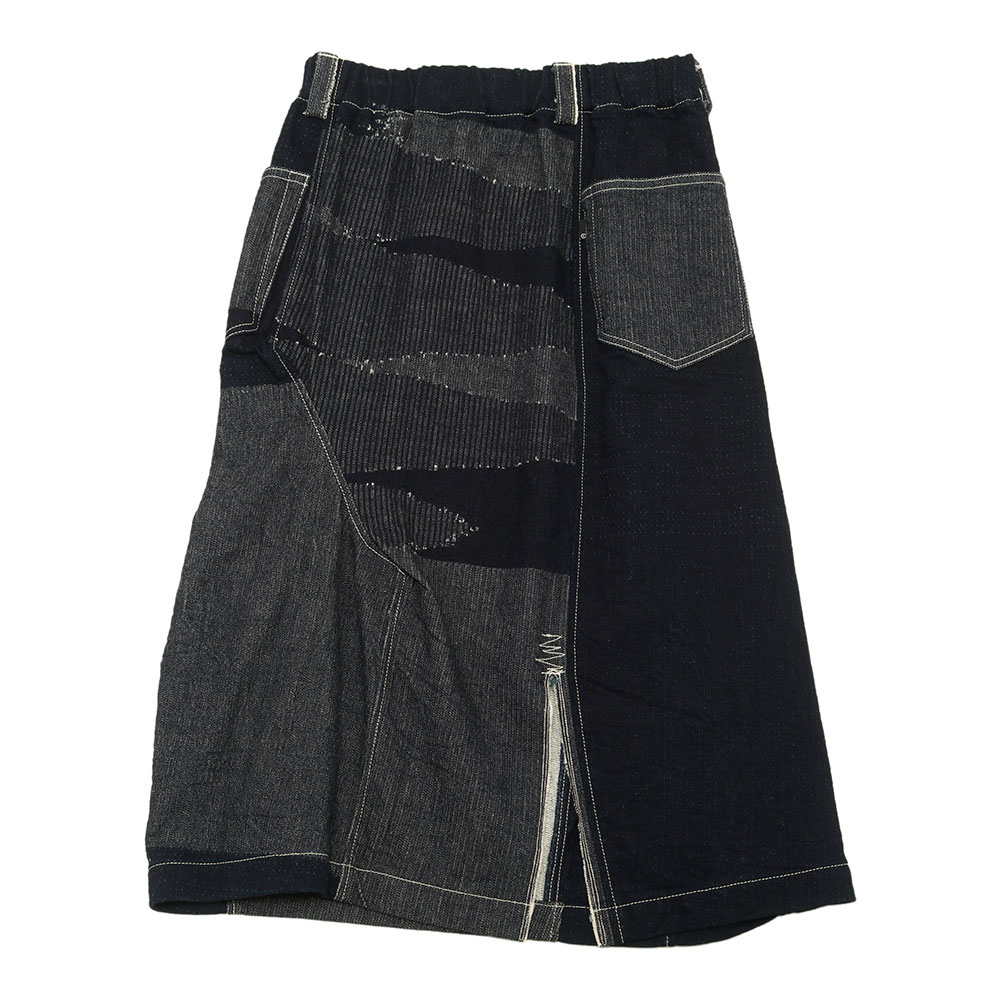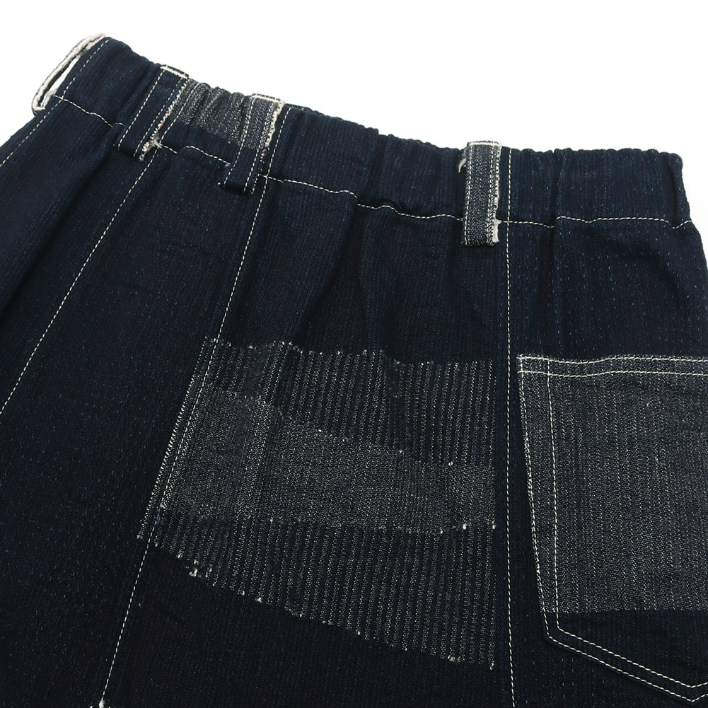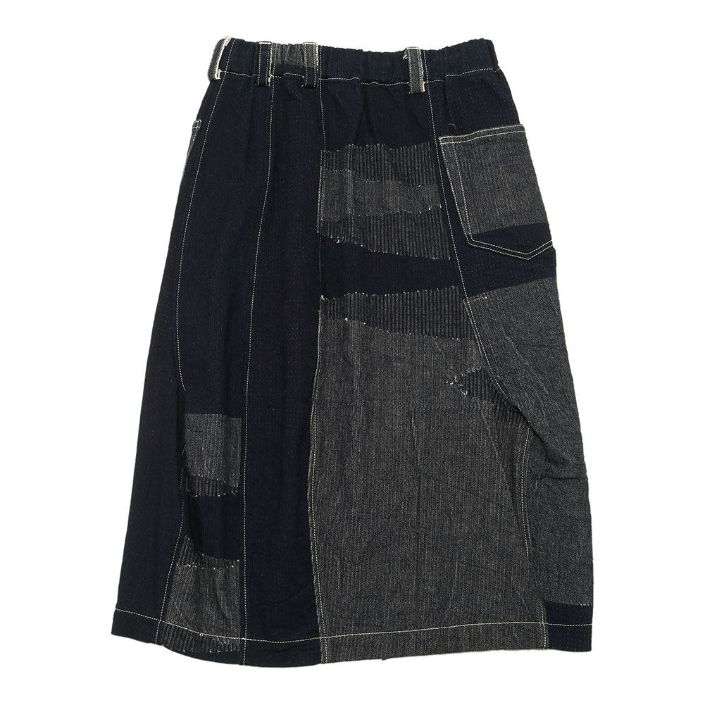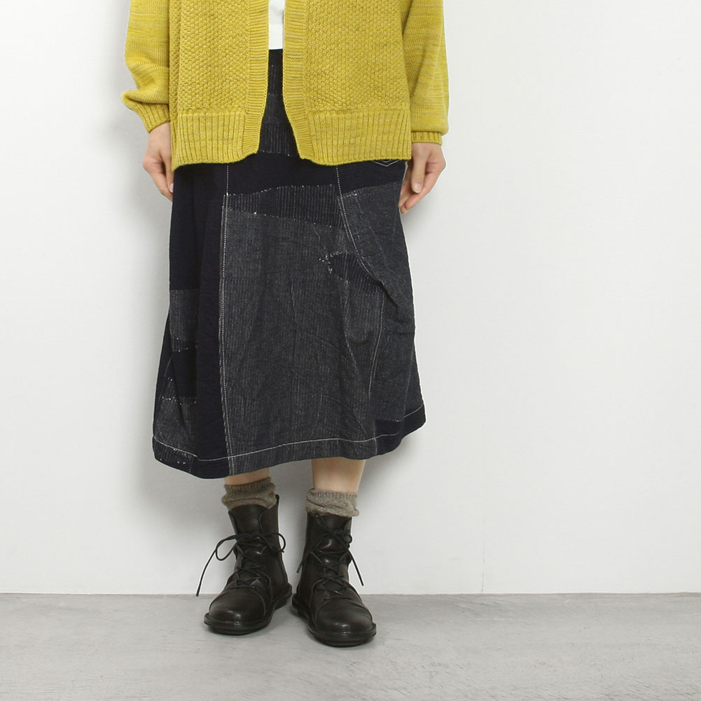 くるりと360°どっちを向いて穿いてもOK。6ピースのパンツのパターンを縫い合わせたちょっといびつで、ぽこぽこっと凹凸がある、手仕事感のあるスカートです。