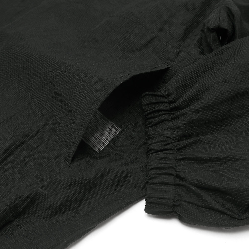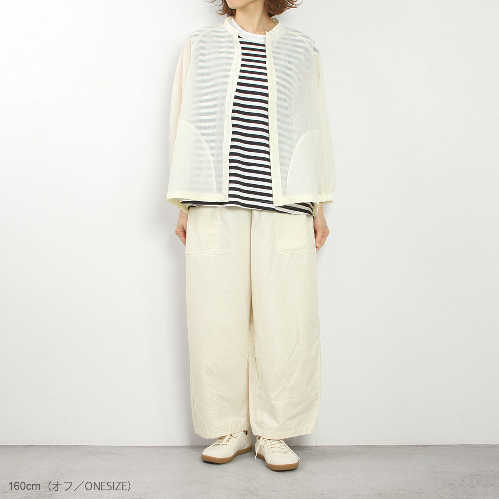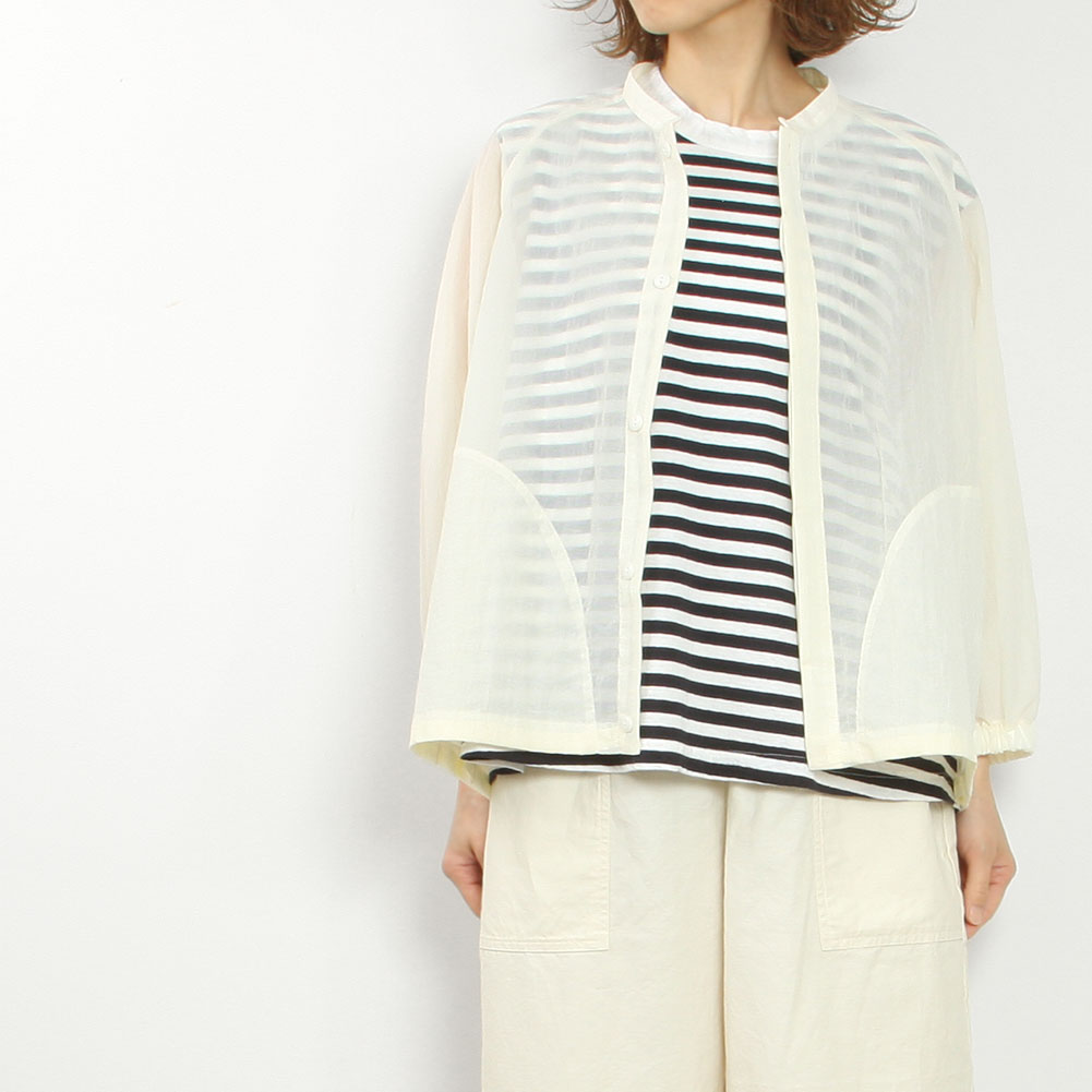 リップストップのナイロン素材で透け感が涼しげで可愛いです。ラグラン仕様で腕回りもゆったり。前を閉じて着ても開けて羽織にしても日よけになって使い勝手が良さそうです。