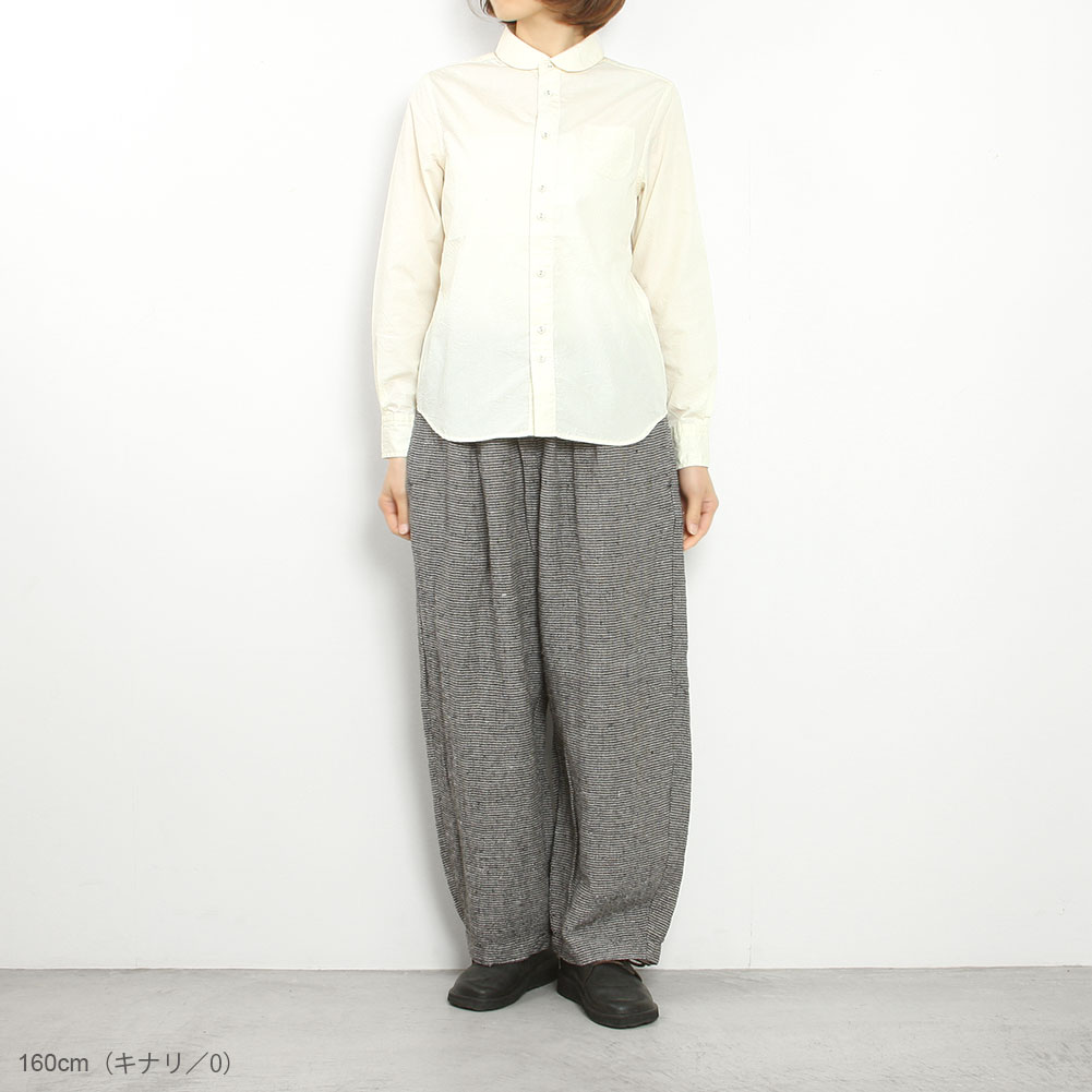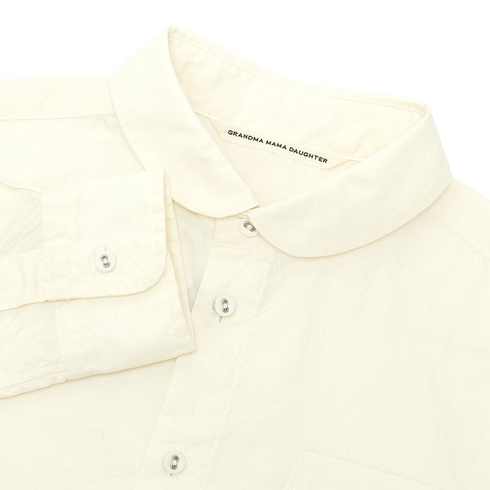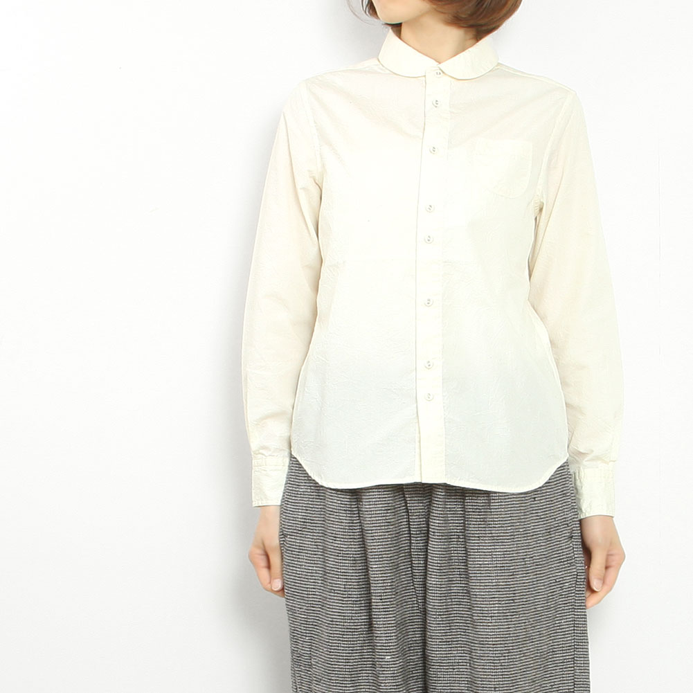 くしゅっとしたシワ感が特徴的なポプリン素材の定番ラウンドカラーシャツ。