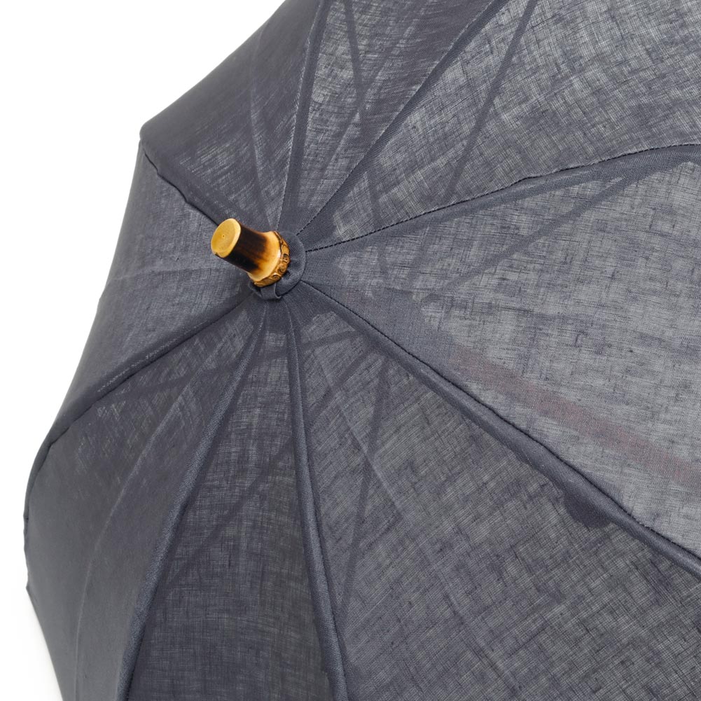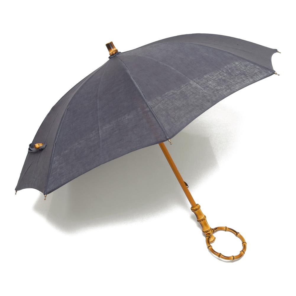 涼やかな透け感と光沢のあるリネン素材の日傘。バンブーバングルとのコンビネーションが上品さを引き立てます。程良くコンパクトなサイズ感で持ち運びにも◎。生地繊維内部に熱を蓄え、奥側まで通さないという性質がある素材なので、涼しく感じられます。