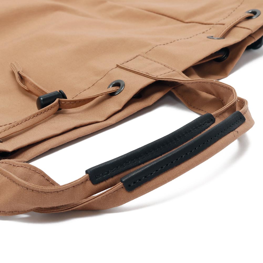 背面のショルダーハーネスは、短くすることでトートバッグ仕様で持つ際にすっきりと収まります。