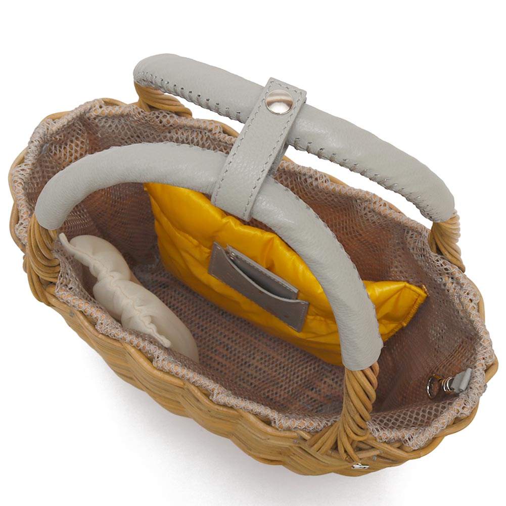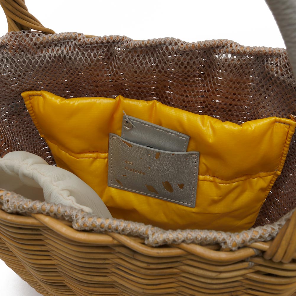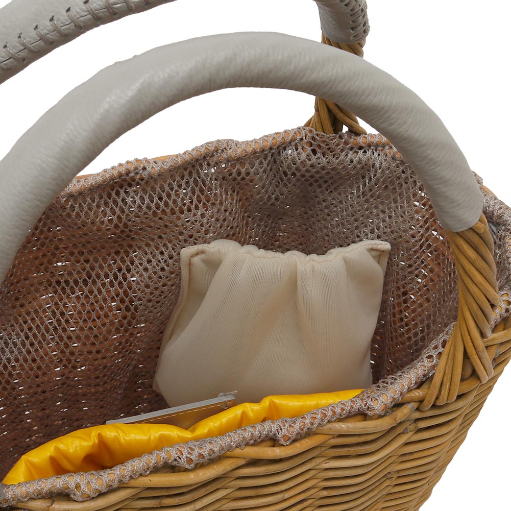 裏地はチュールにナイロン綿入りのポケットがついていて、A4の書類も入ります。かぶせは取り外し可能 です。