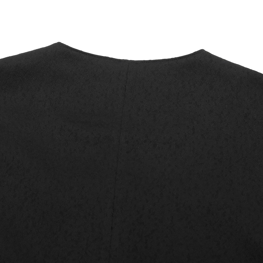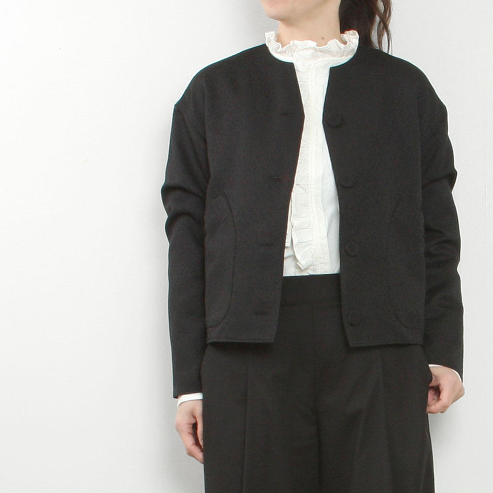 ボタンも同じ生地を仕様していて、シンプルで上品な仕上がりになっています。皺にもなりにくいのもポイント。