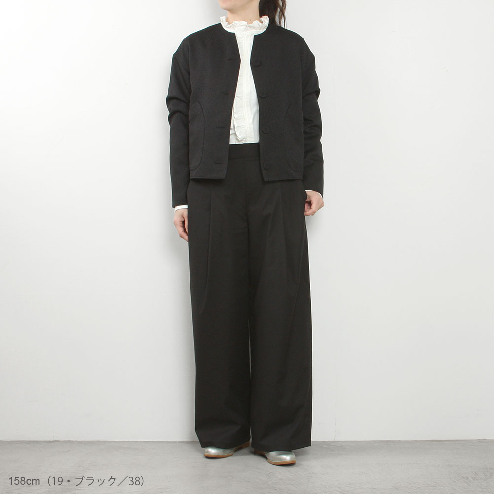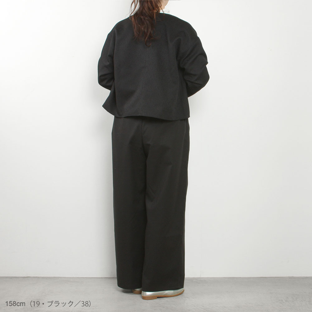 ウエスト後ろゴムで履きやすさも抜群。同じシリーズのジャケットとセットアップとしてもお勧めです。