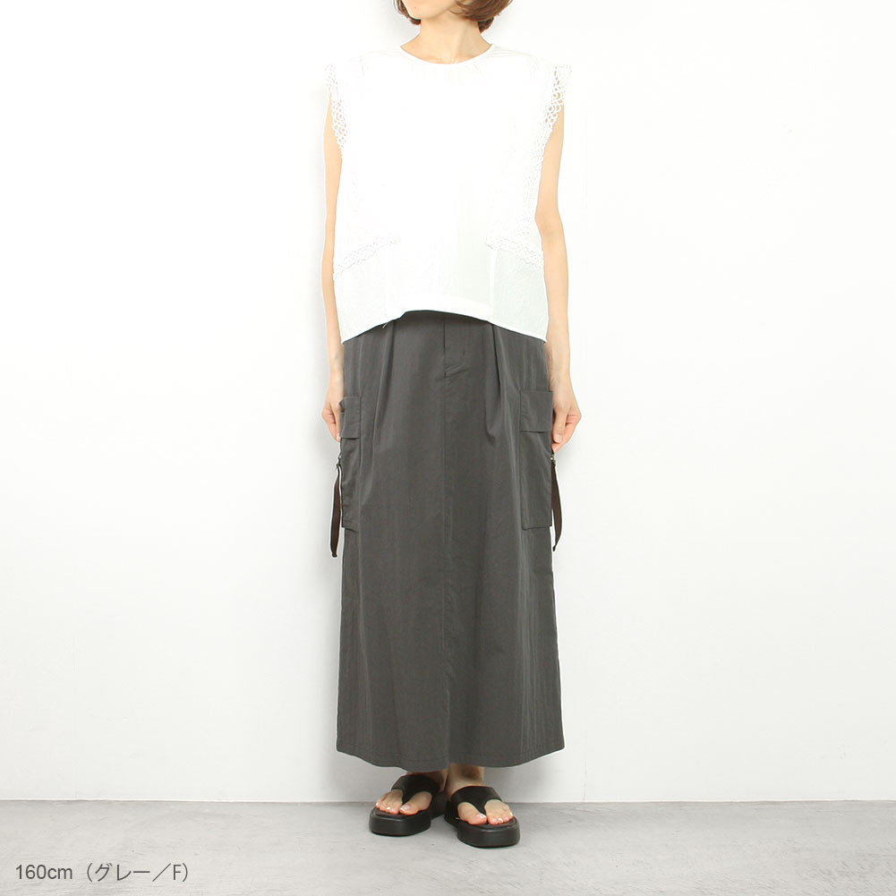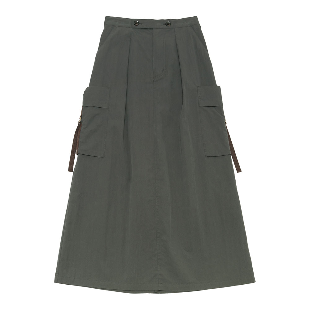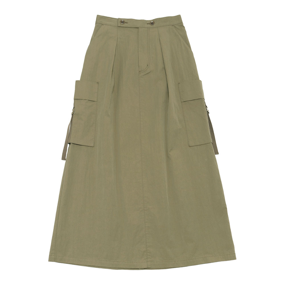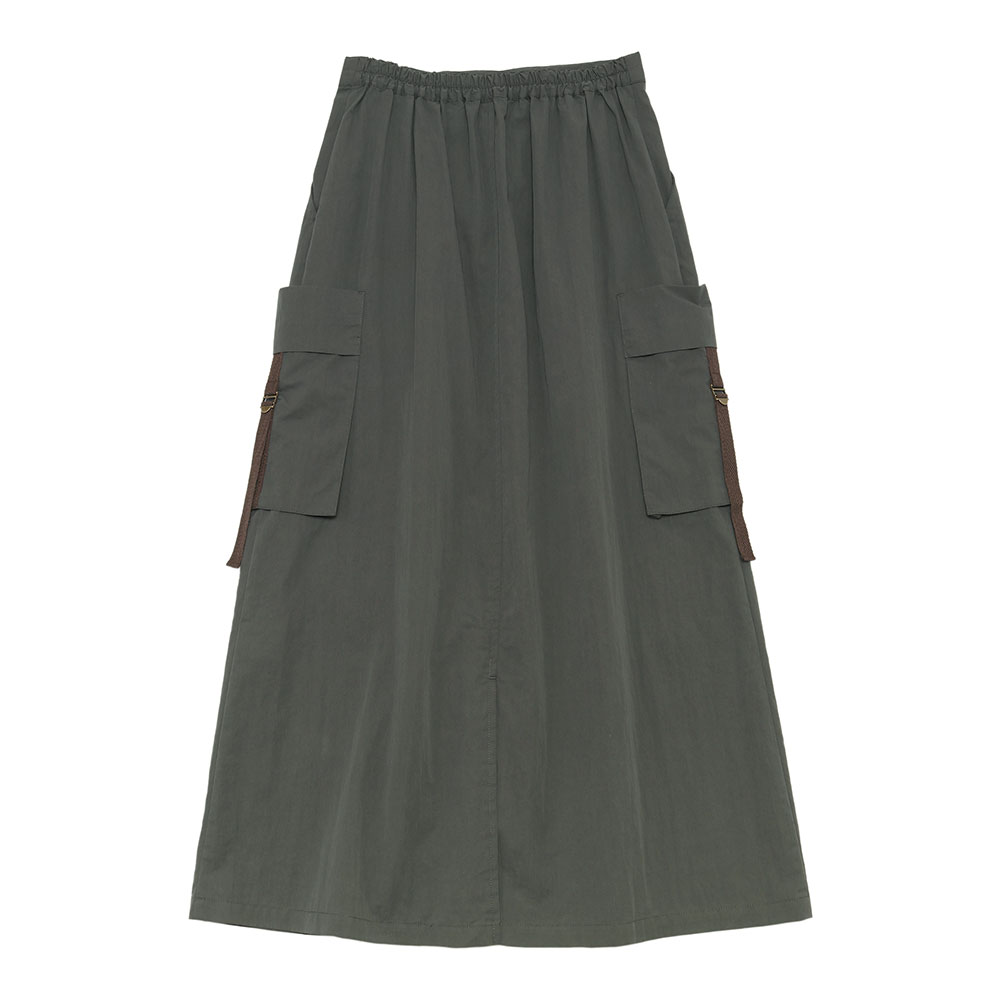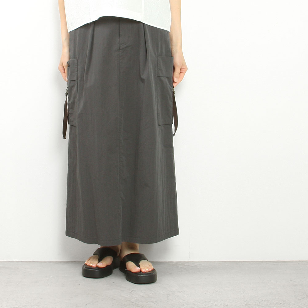 両サイドのポケットがポイントになったコットンギャバのカーゴスカート。