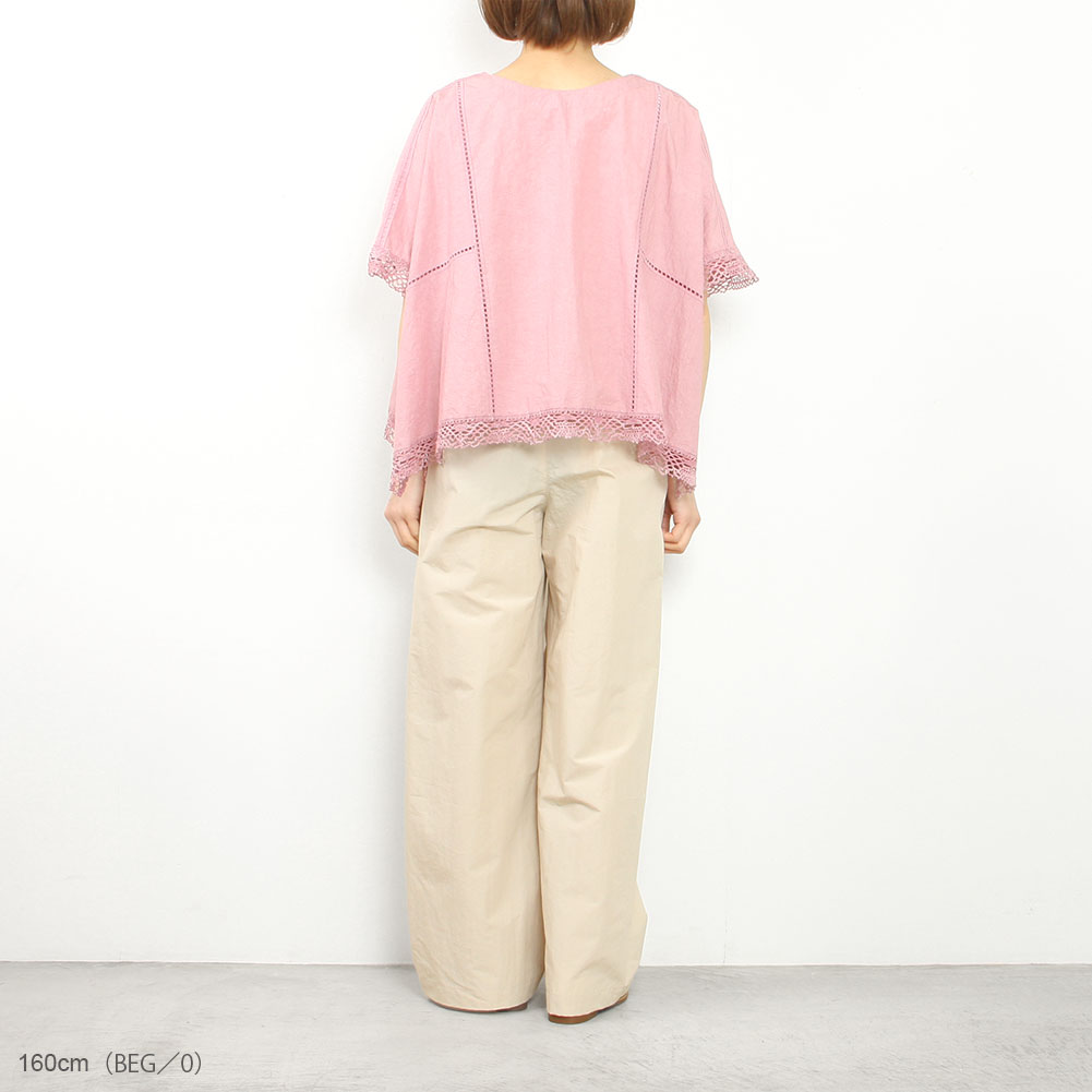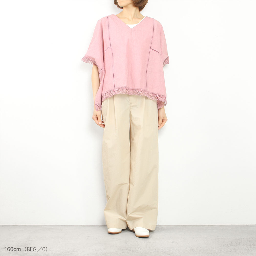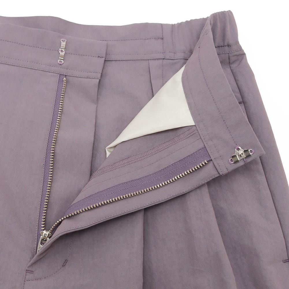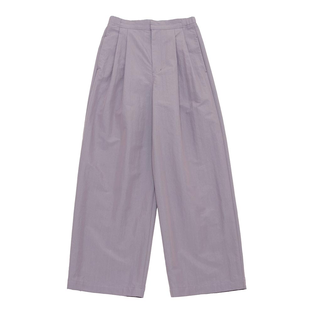コットンナイロン素材を使用したタイプライターワイドパンツ。