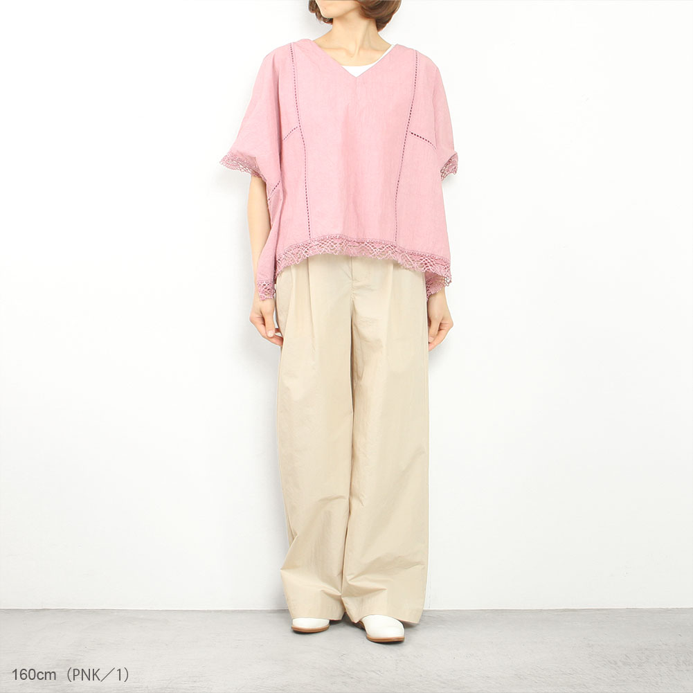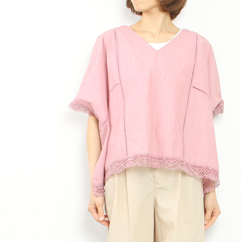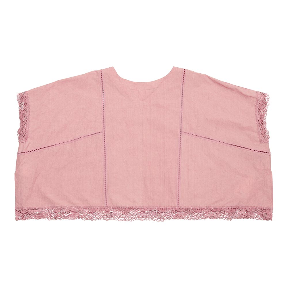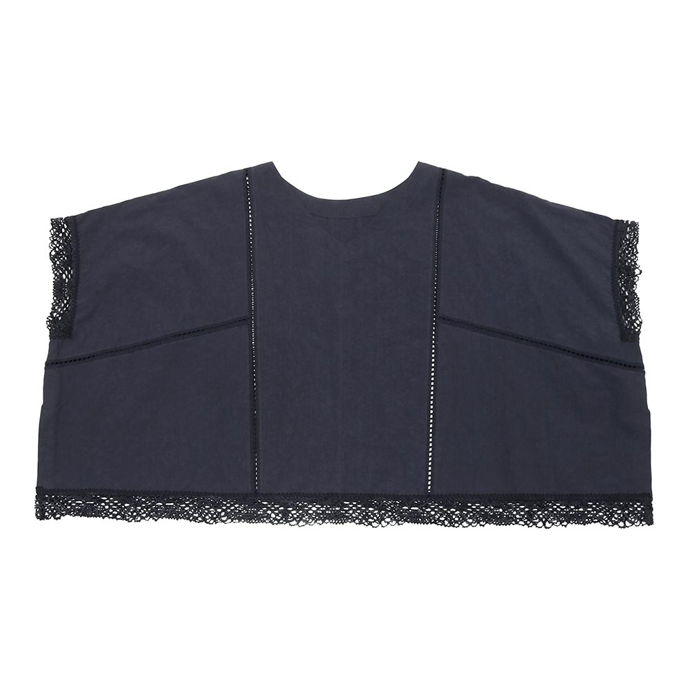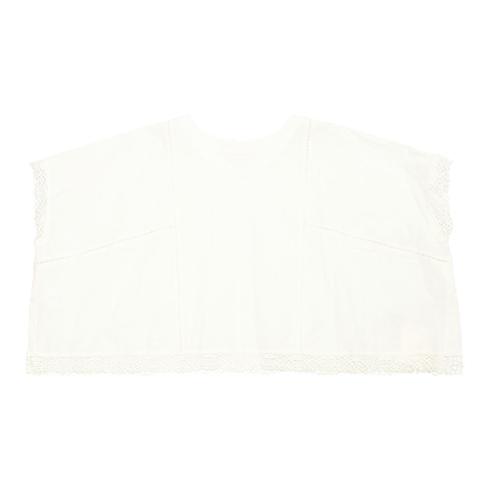 スラブ感のあるコットンレースを使用したワイドシルエットのポンチョブラウス。