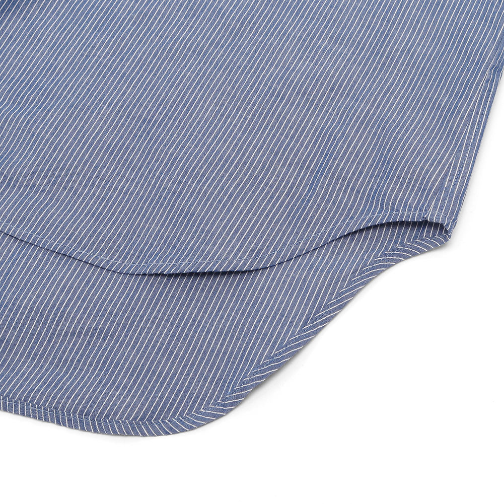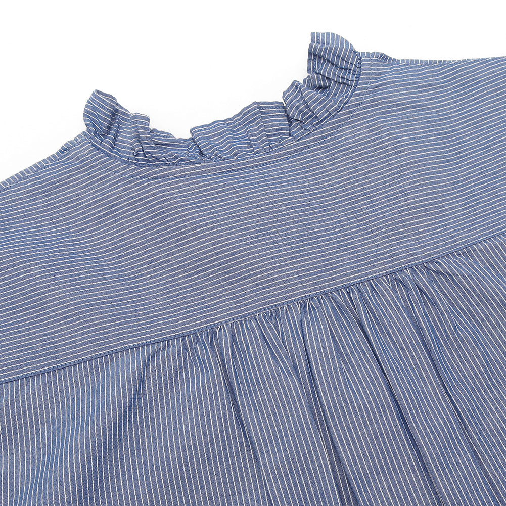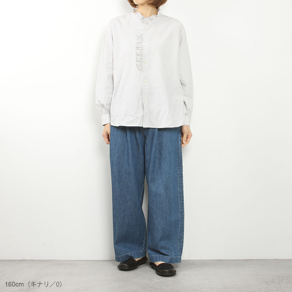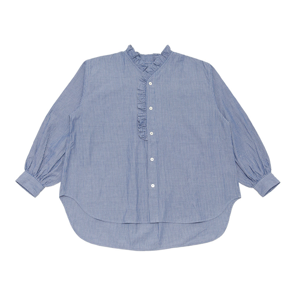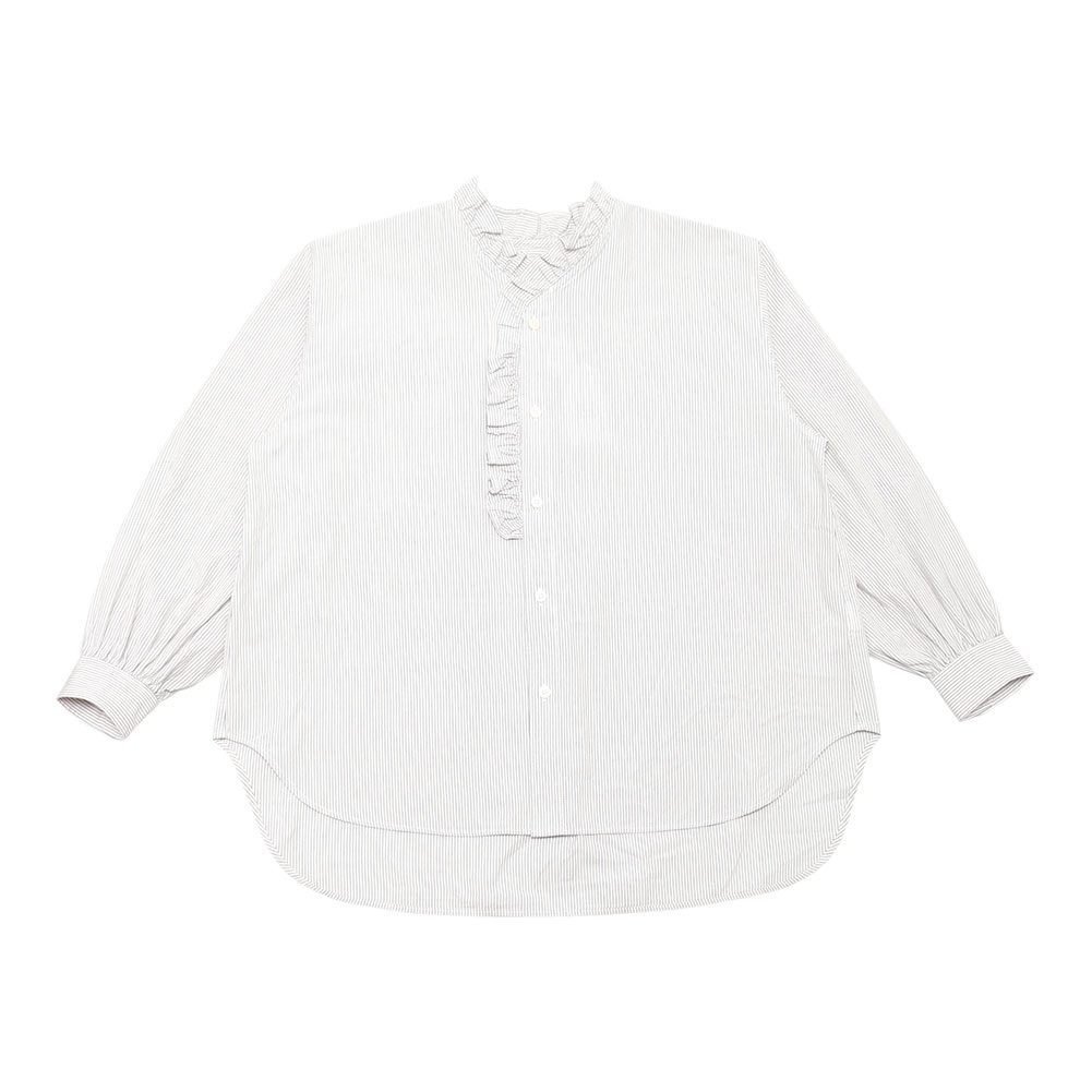 ストライプ柄が爽やかなVネックフリルシャツ。