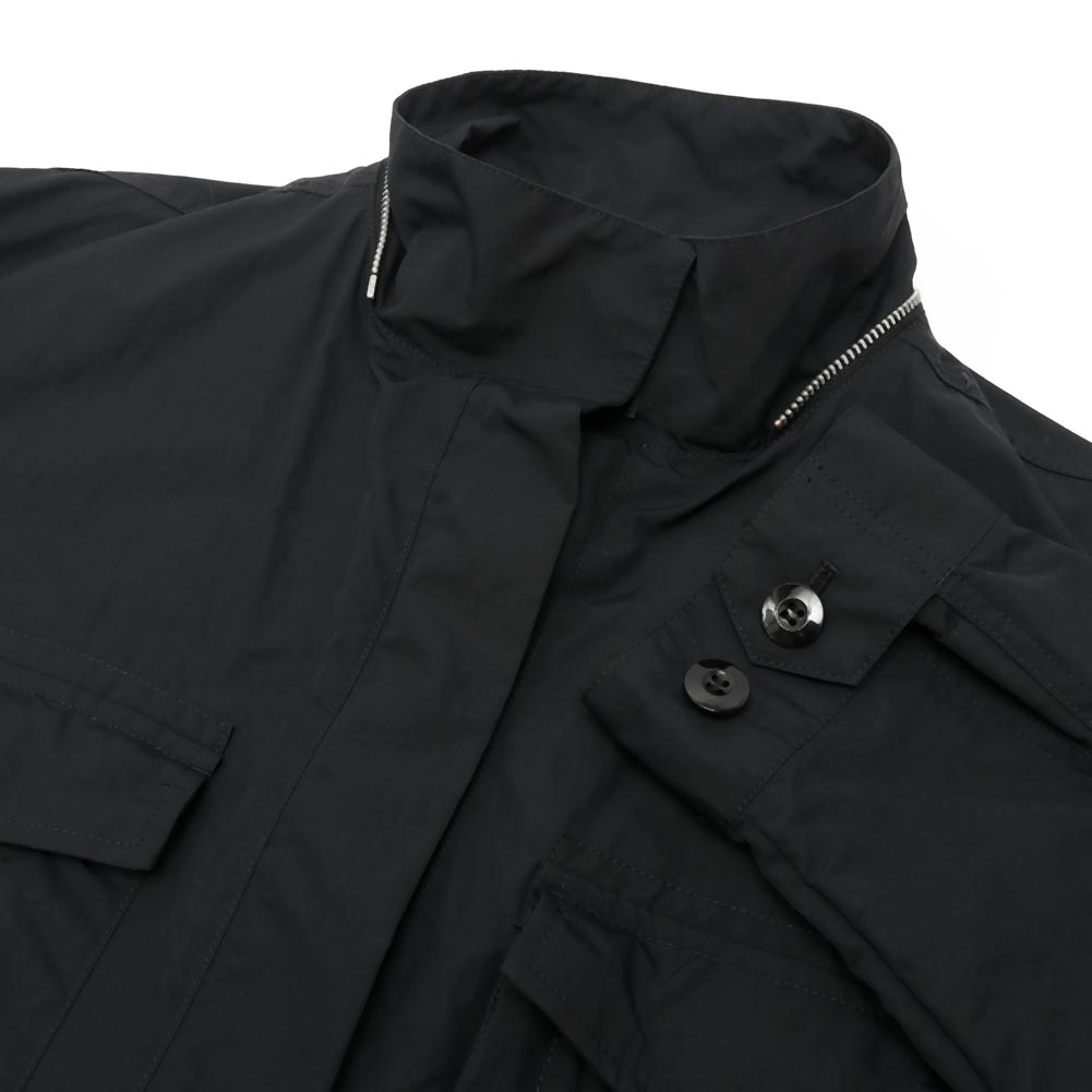 ジップアップとマジックテープで開閉でき、襟元はスナップボタンで留められるので、スタンドネックにもなります。ポケットも大きめのデザインでポイントに。