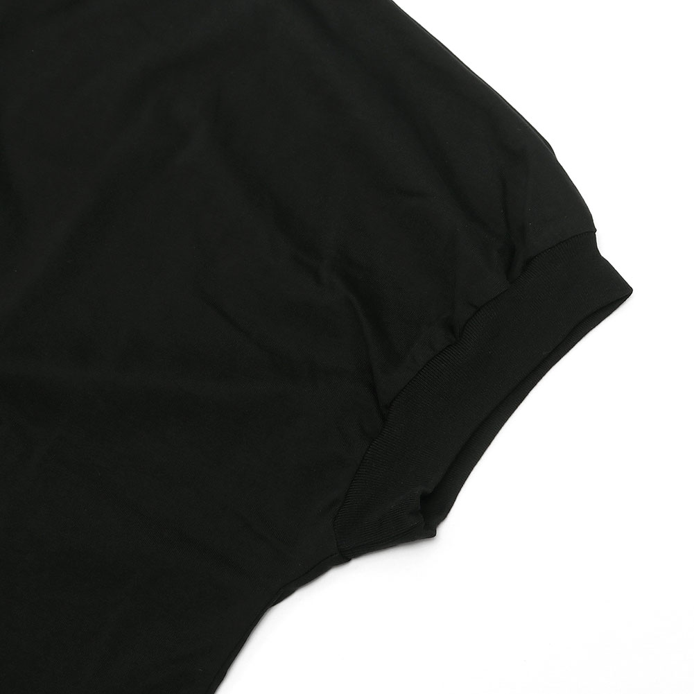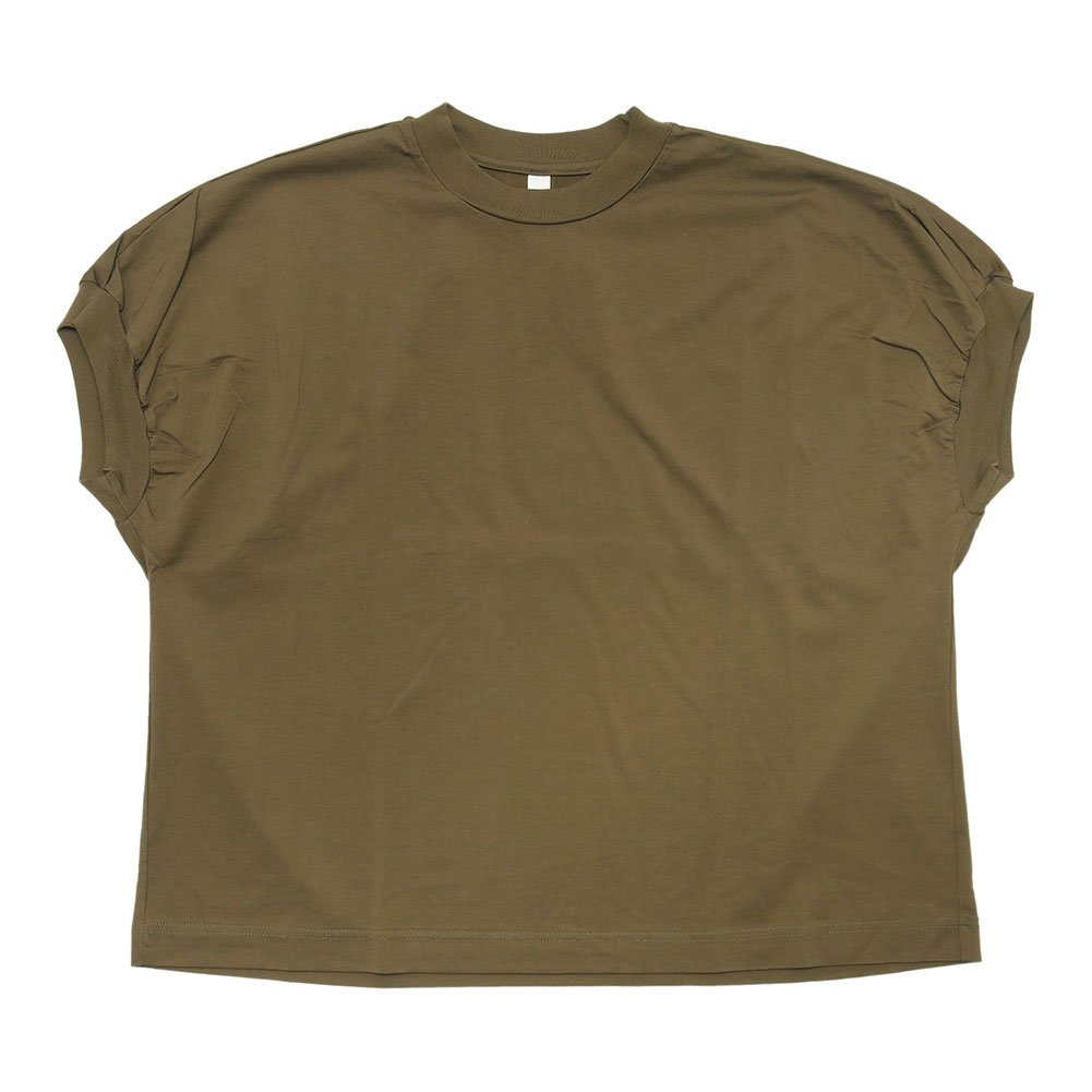 ストレッチが効いていて着心地も◎。首は開きすぎず、1枚でサラッと着られます。袖口のパフがワンポイントです。