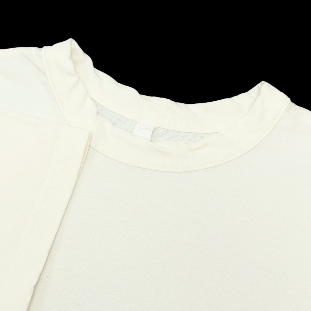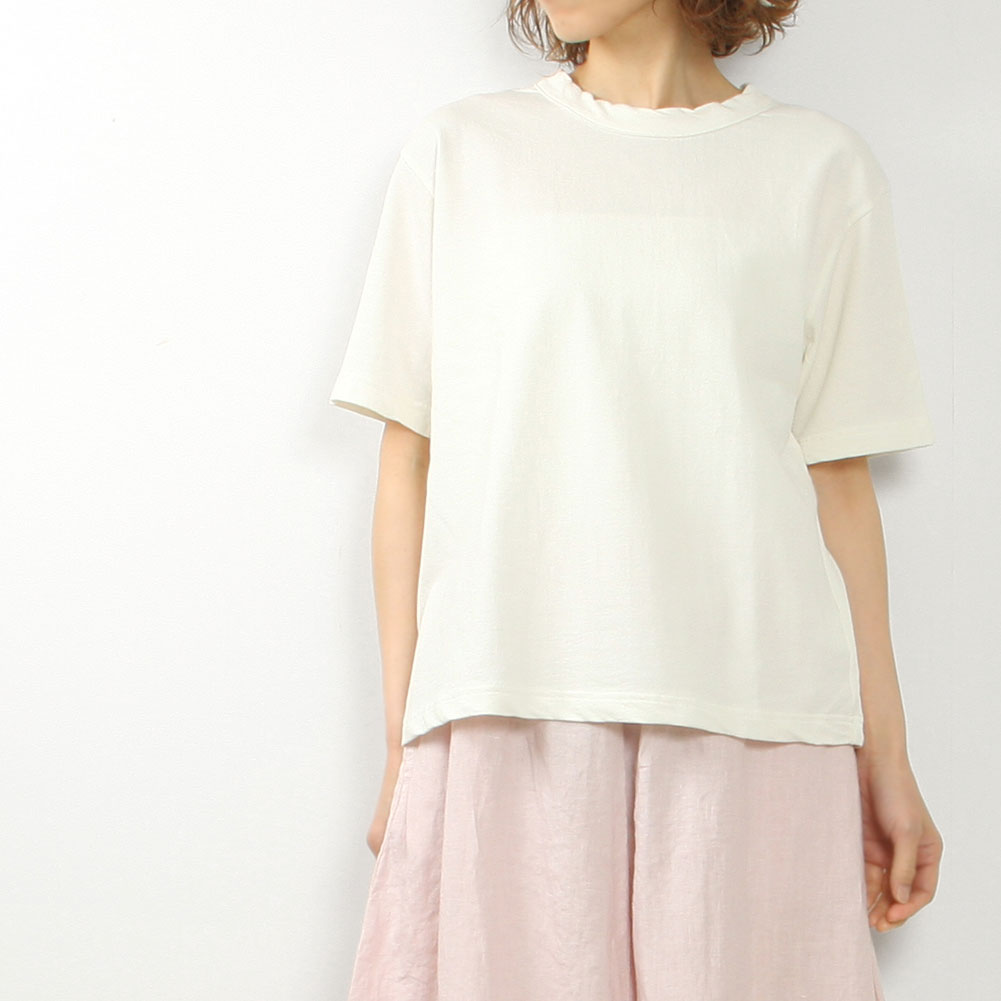 身幅は程よくゆとりがあり、ボトムに合わせやすい着丈で1枚でもサラッと着こなせますし、インナーとして上にも羽織りやすいサイズ感になっています。1枚持っていると重宝しそうです。