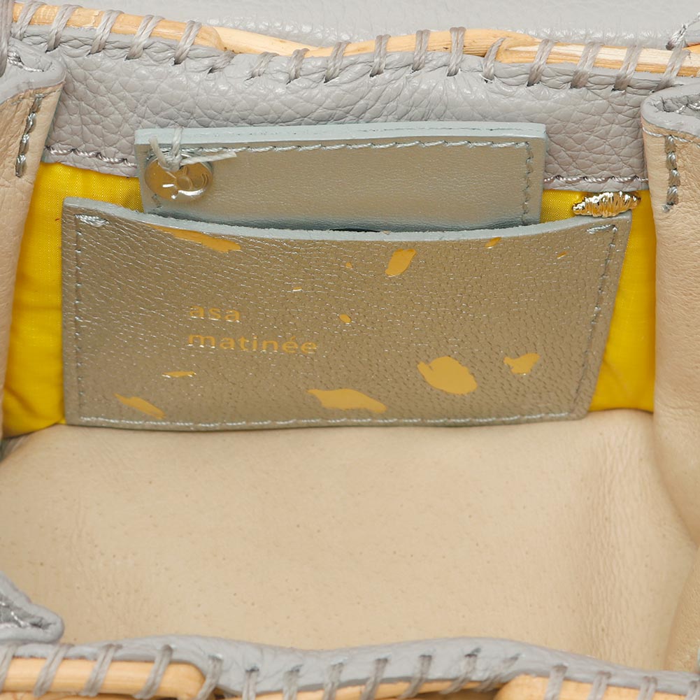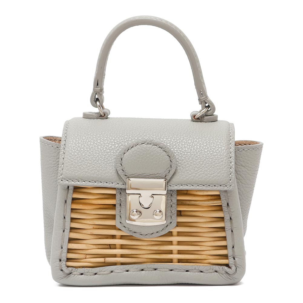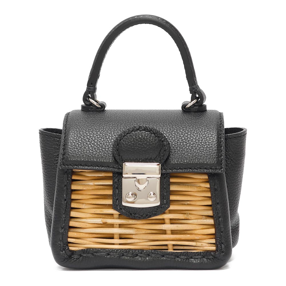 ふにゃっとやわらかなフニュシュリンク素材と紅籐との組み合わせのハンドバッグ。