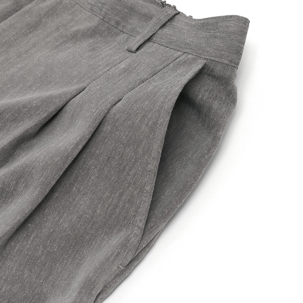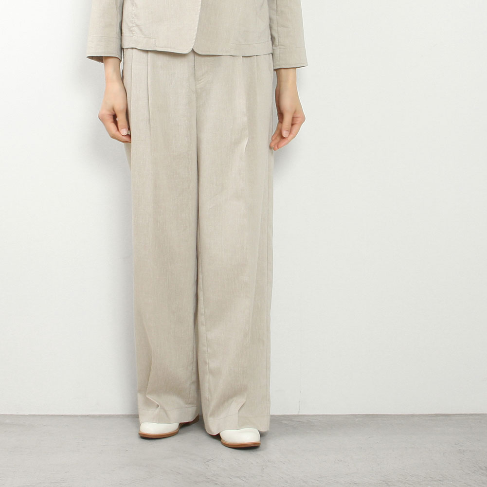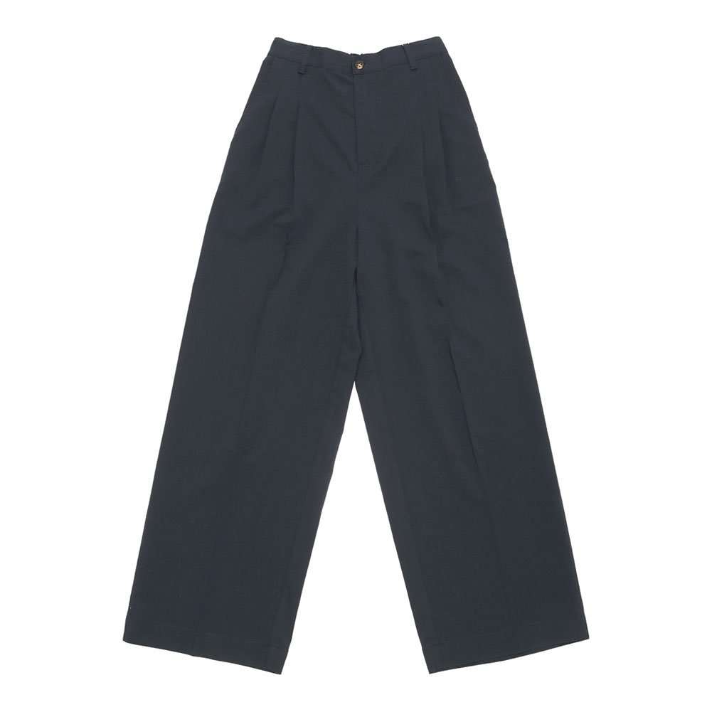 ツータックのセンタープレスデザインですっきりとしたワイドシルエットパンツ。さらりとした肌触りが心地よく、細すぎず、太すぎない使いやすいアイテムです。