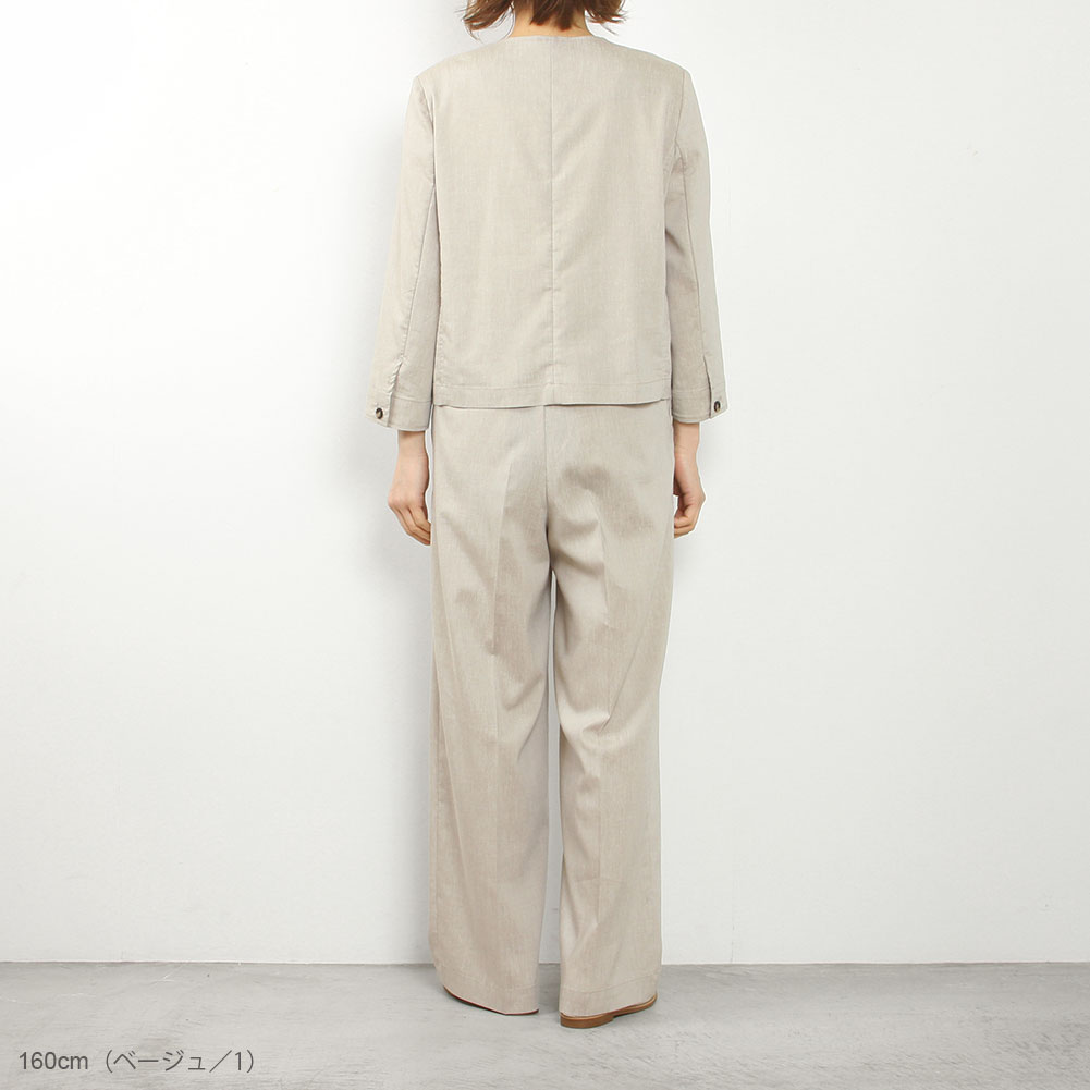 穿き心地のよいストレッチ性のある素材でウエスト後ろはゴム仕様、同素材のジャケット(02-200-6)とのセットアップもおすすめ。
