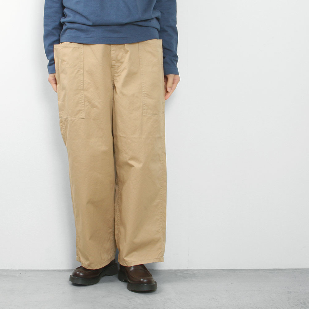 サイドに配された象徴的な大きなポケットが印象的なワイドシルエットのイージーチノ。