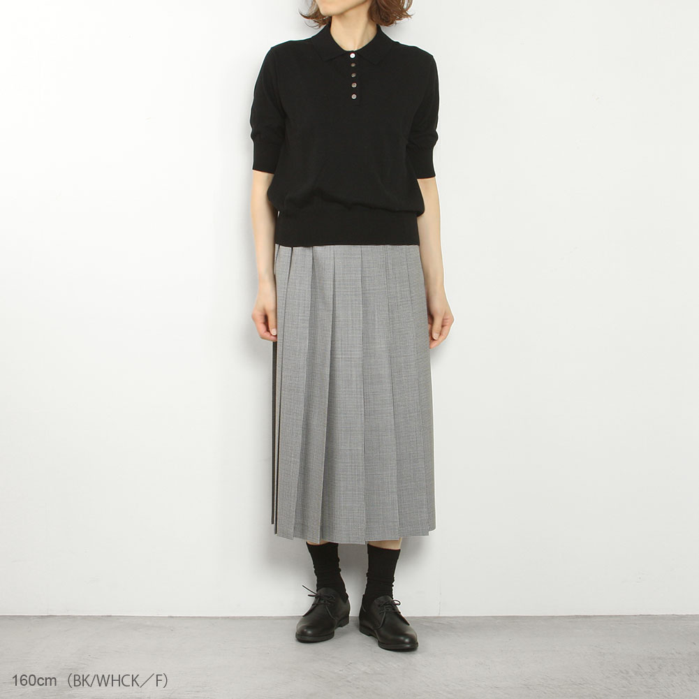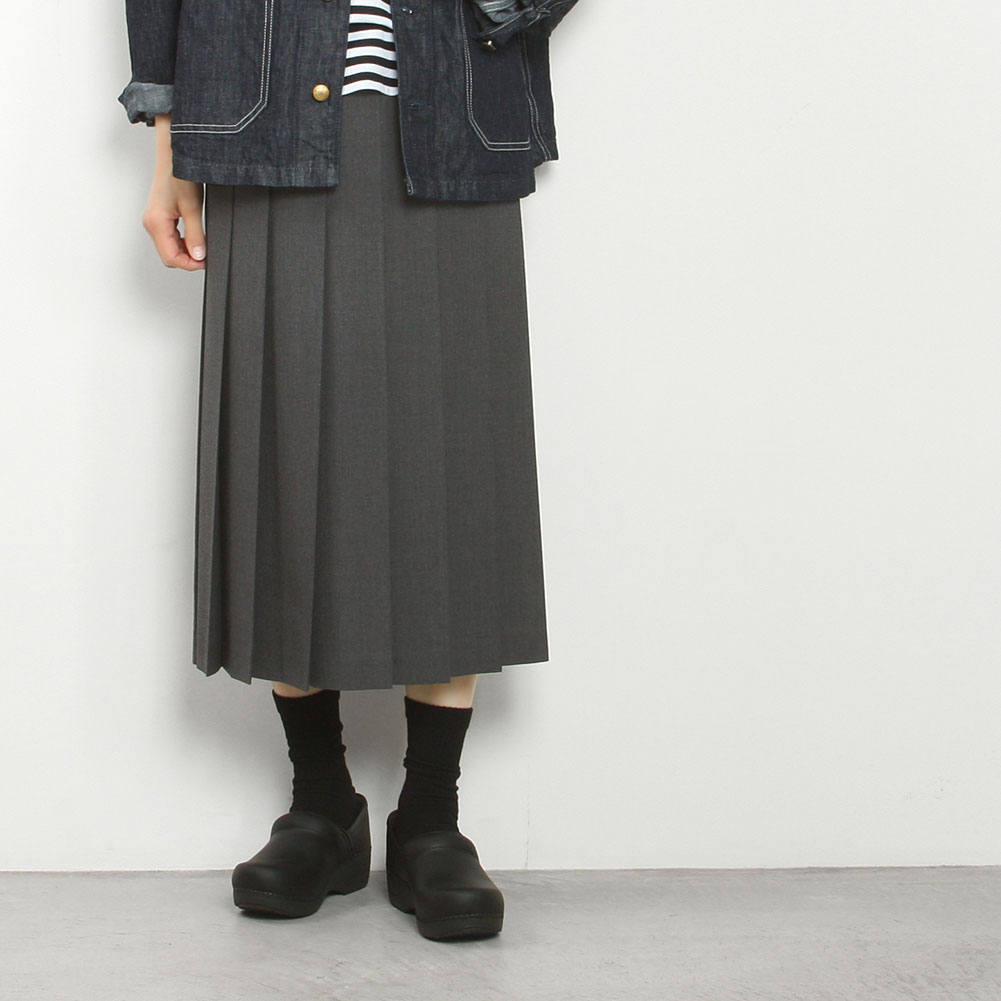 動くたびに揺れるプリーツが上品なスカート。スーツにも使われるサマーウールは、カジュアルな着こなしはもちろん、お仕事着にもおすすめです。裏地はついていませんが透け感はなく、軽やかに穿いていただけます。また、薄手の生地ですので春夏秋とシーズン長く活躍します。