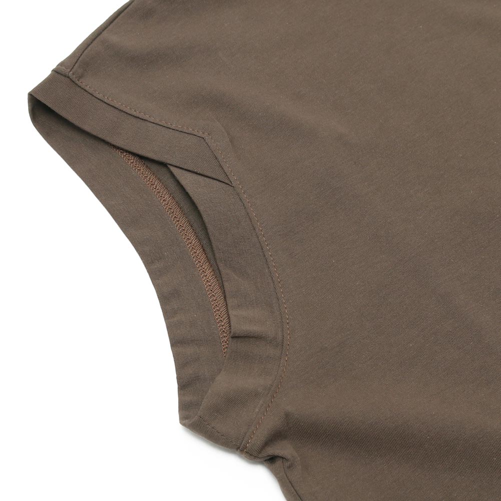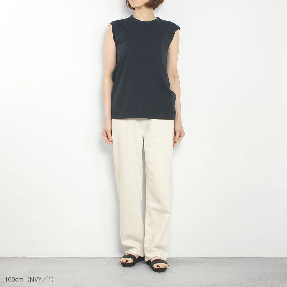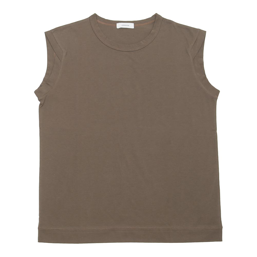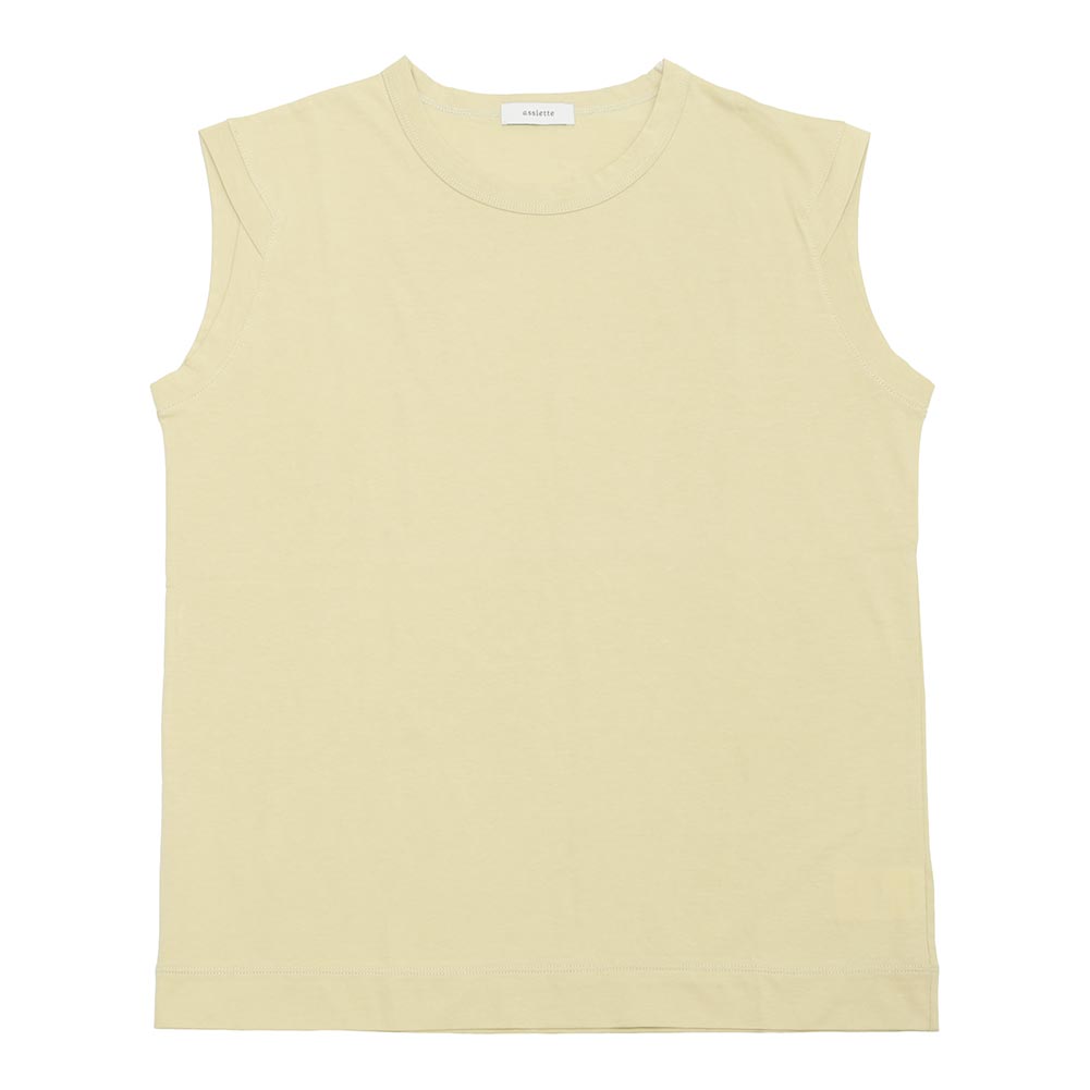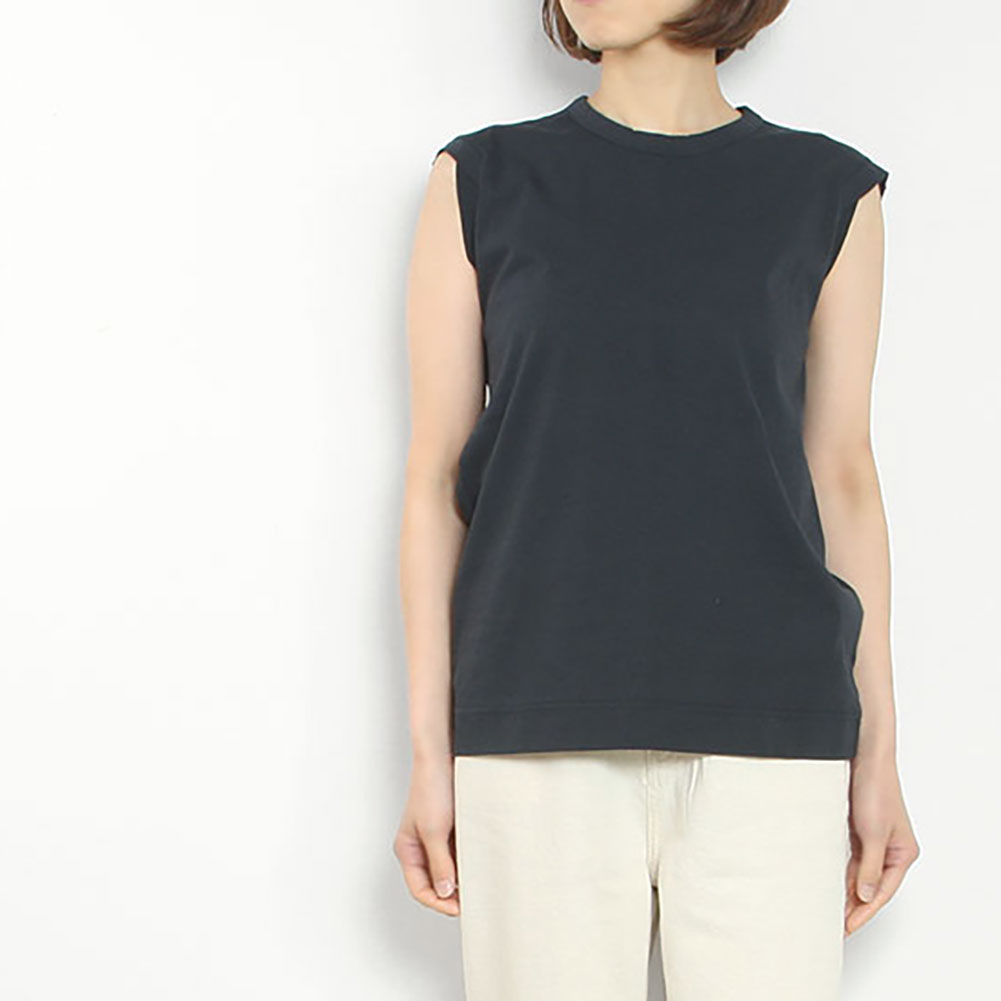 アームホールの控えめなデザインがポイントで、一枚でも使いやすくインナーにも最適です。