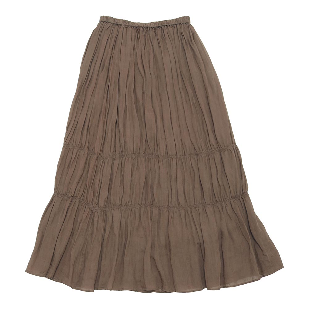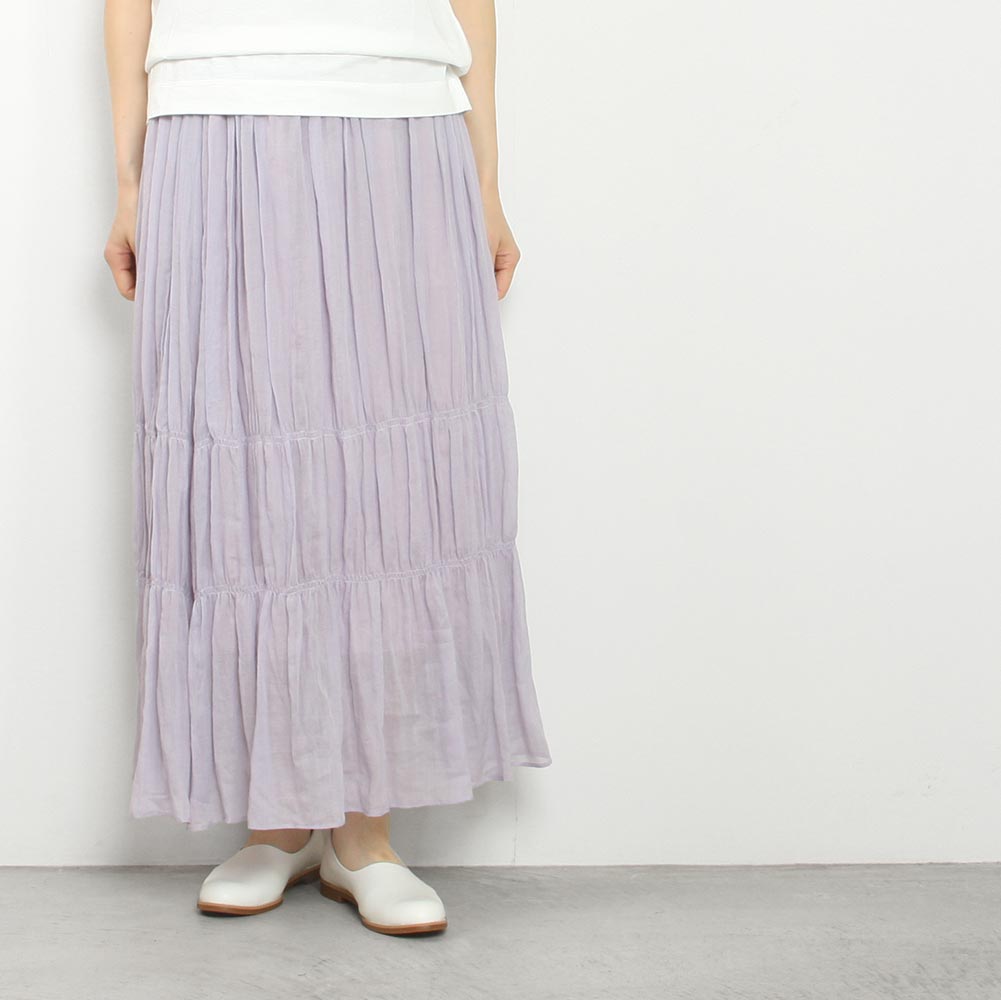 程よくふんわりとした縦に流れるギャザーですっきり穿ける一枚。裾付近に入ったシャーリングもポイントです。