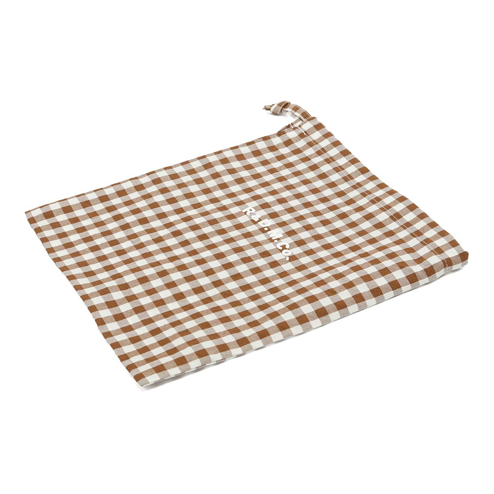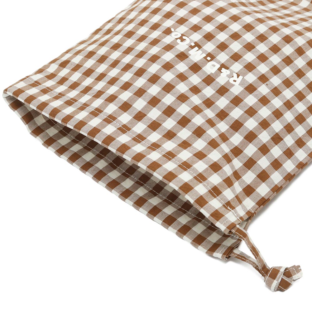 上品な大人のチェック柄のファブリックは上質なコットン、リネン、シルク素材。人気のギンガムチェック柄のDRAWSTRING BAGは、メインでさりげなくコーデのアクセントにも、 バッグインバッグとして使うのも良さそうですね。プレゼントなどにも喜ばれそうです。