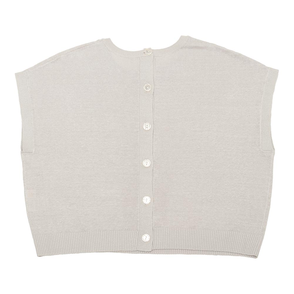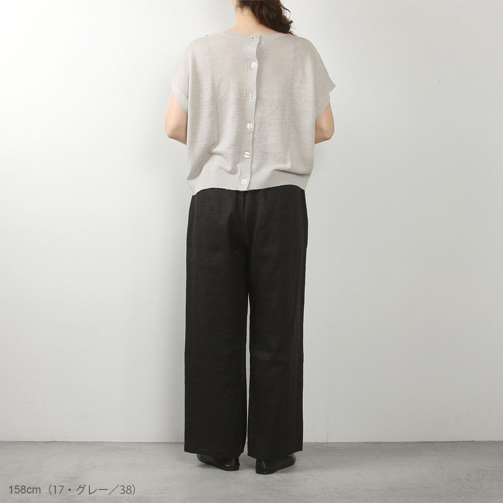 背中のボタンがポイントになったリネンフレンチスリーブニット。