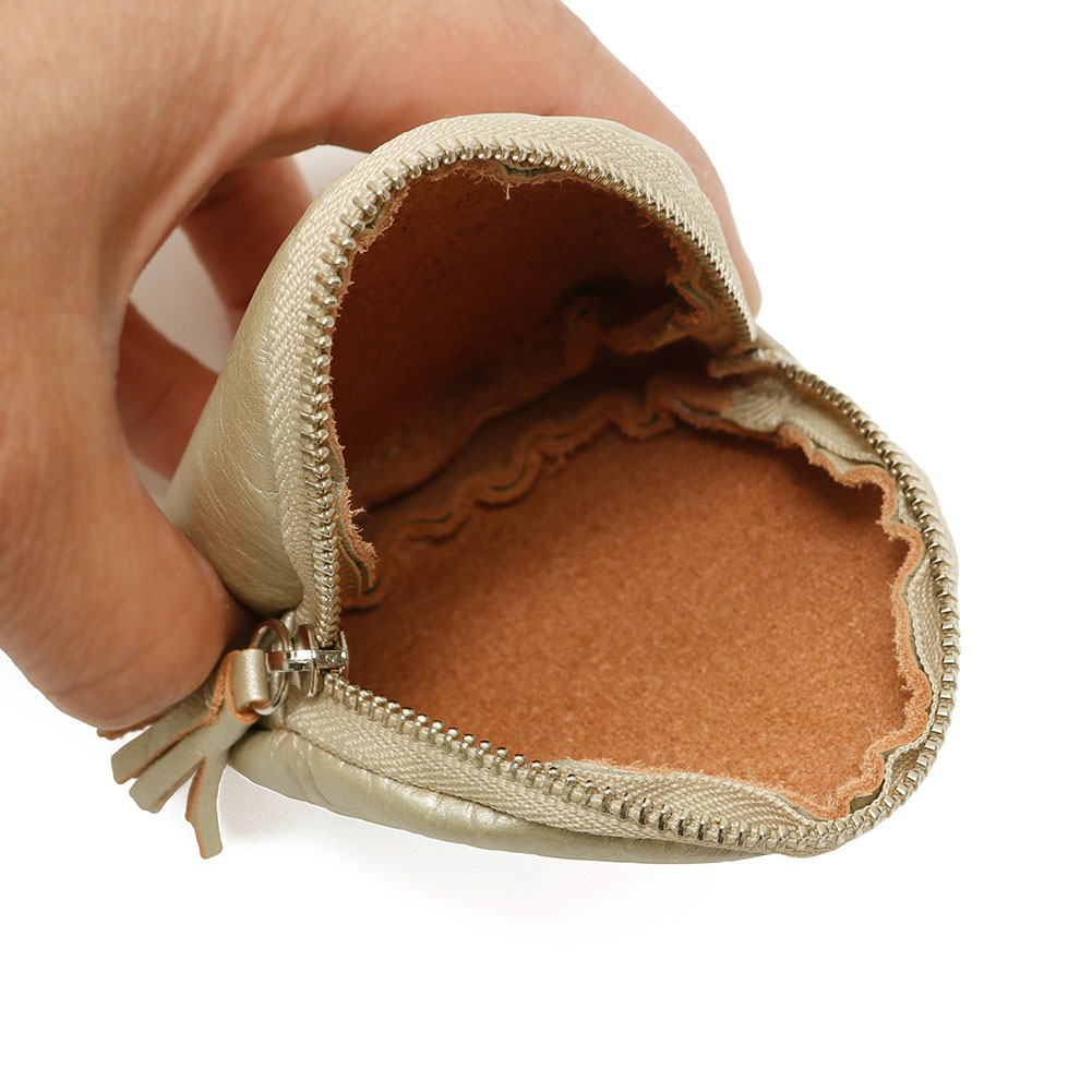 山羊革で柔らかく、使いやすいサイズ感。フリンジが付いているのがポイントになってくれています。