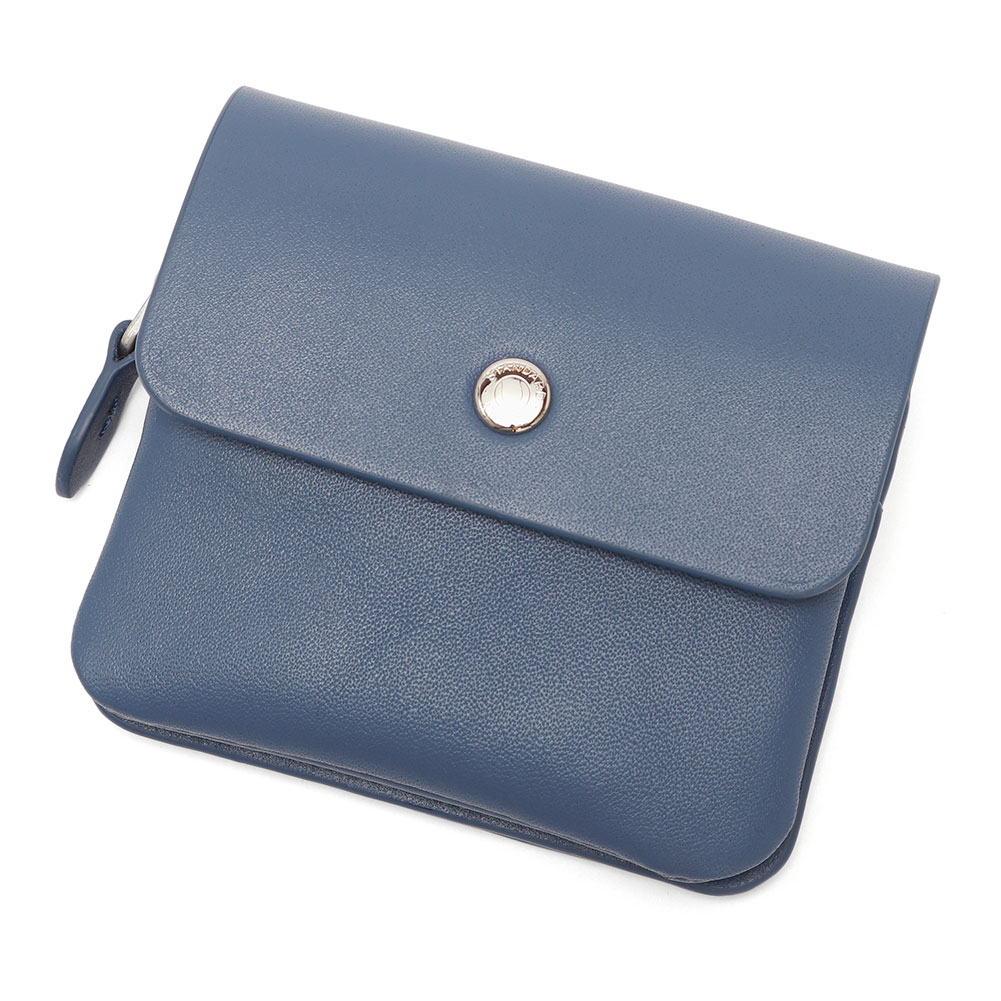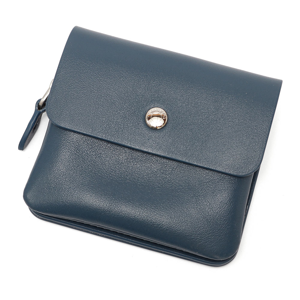 手のひらサイズのコンパクトな財布です。イタリア製のナッパレザーを使い、カラフルな色展開と透明感のある表情が魅力的なアイテム。前側の小銭入れはラウンド型にすることで取り出しやすくしており、中央にはカードが3枚ほど入るポケット。後側の札入れ部分はお札を二つ折りにして入れる仕様で、背面にはICカードなどが入るポケットが付いています。本体にはイタリア製の牛革を使用した上品な仕上げとなっています。