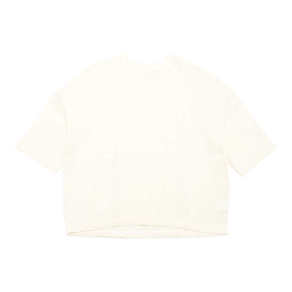 麻のシャリ感とレーヨンの滑らかな肌触りが気持ちいいプルオーバー。少し光沢感がありカジュアルになり過ぎない生地感で、ストレッチが効いて着心地がよく、裾ヒモを絞ればシルエットの変化が楽しめます。