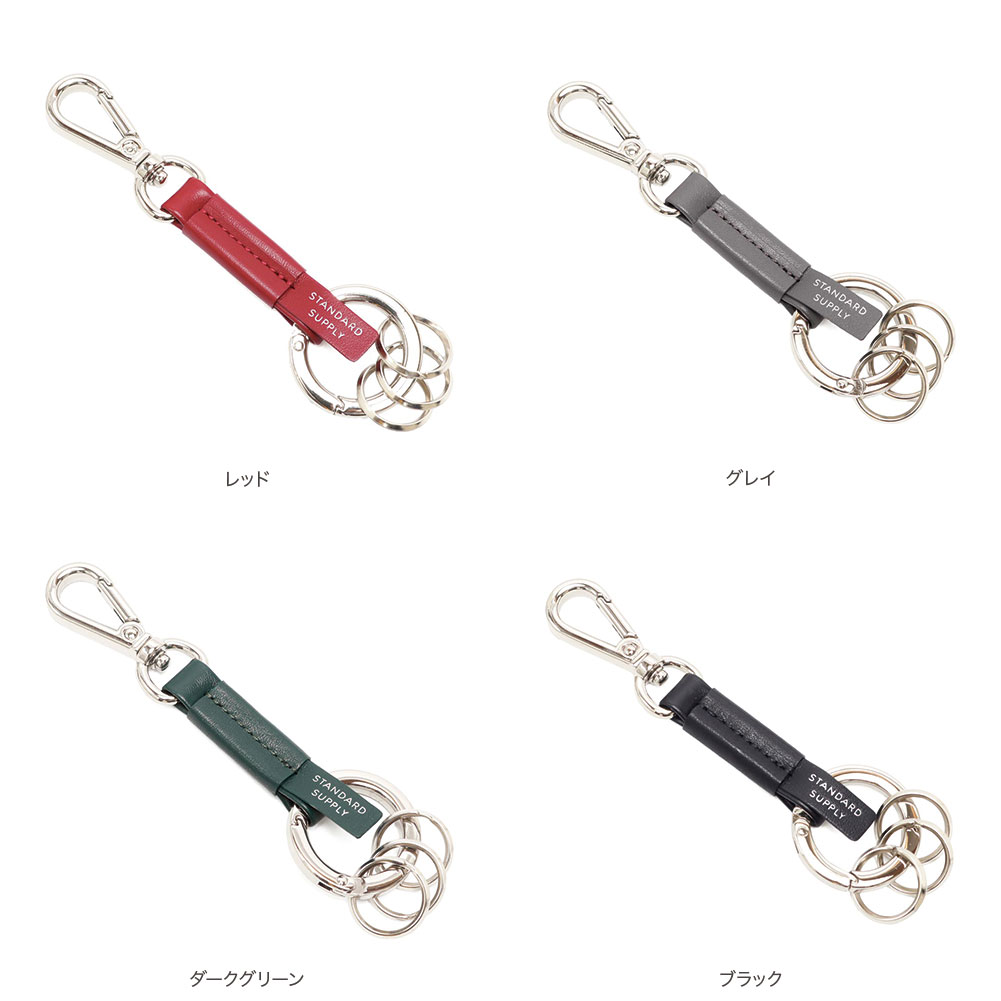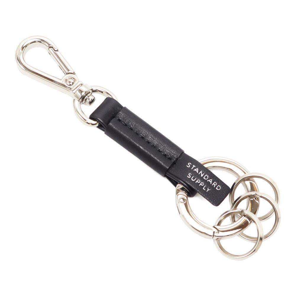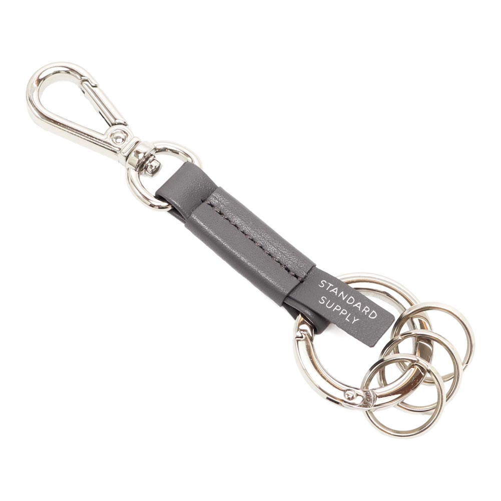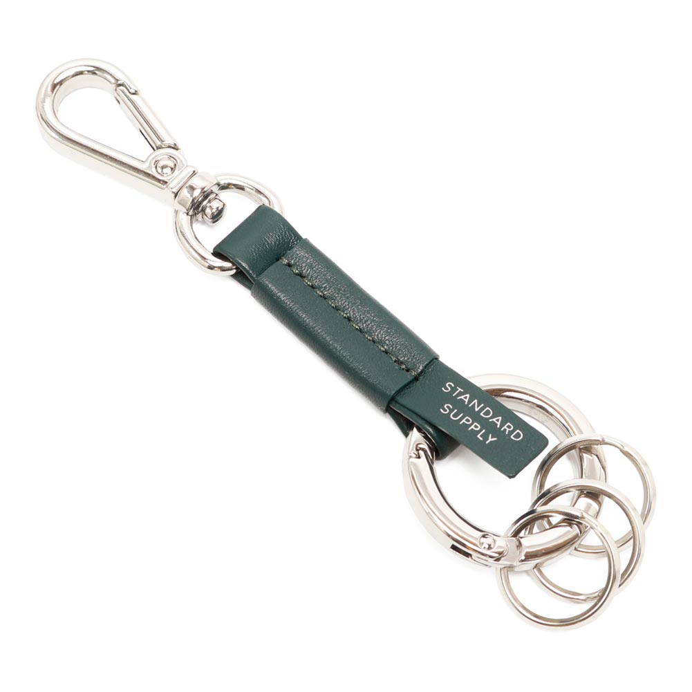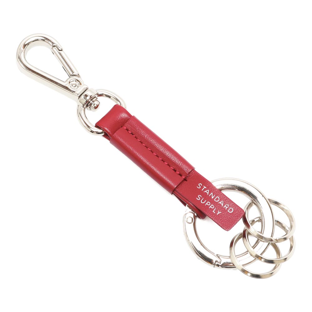 フック付きのキーホルダーです。イタリア製のナッパレザーを使い、カラフルな色展開と透明感のある表情が魅力的なアイテムです。片側にフックパーツを付けています。反対側の丸カンは外側に開く仕様ですので、付属のWリングは簡単に取り外しができます。