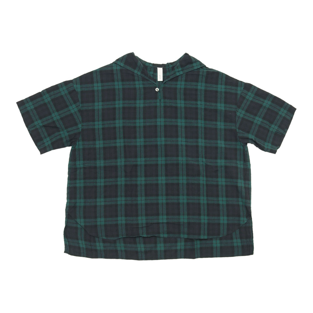 晒の様なサラッとした生地感で夏場はとても涼しそう。小さめのセーラーカラーでさり気なく可愛いです。お袖は肘の辺りまで落ちるので二の腕も気にならずに着られ、後ろが少し長くなっていてお尻も隠れます。