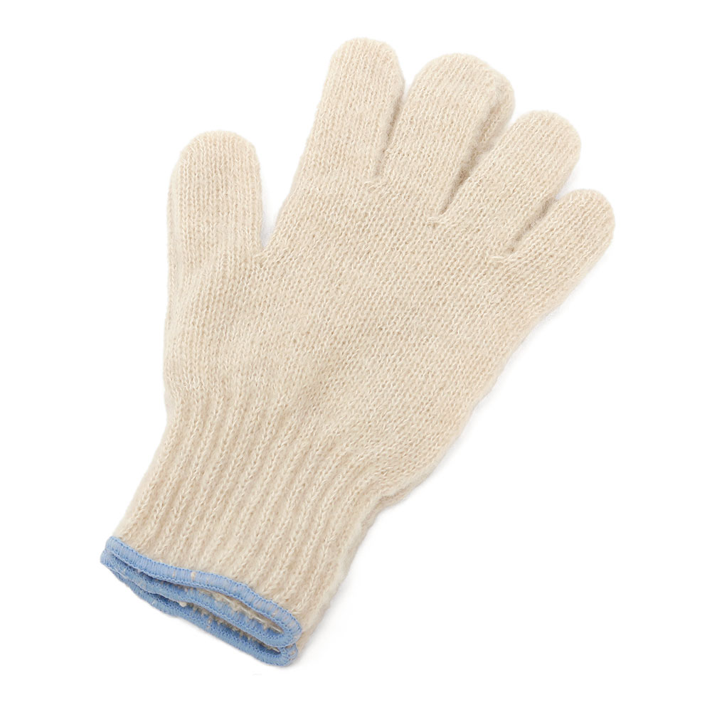 作業用の軍手と同じ編み機を使って作られたGUNTE。手首の刺繍のカラーがワンポイントに。ウールがブレンドされた温もりのあるアイテムはギフトにもぴったり。Sサイズは女性の方におすすめです。左右差のないデザインです。