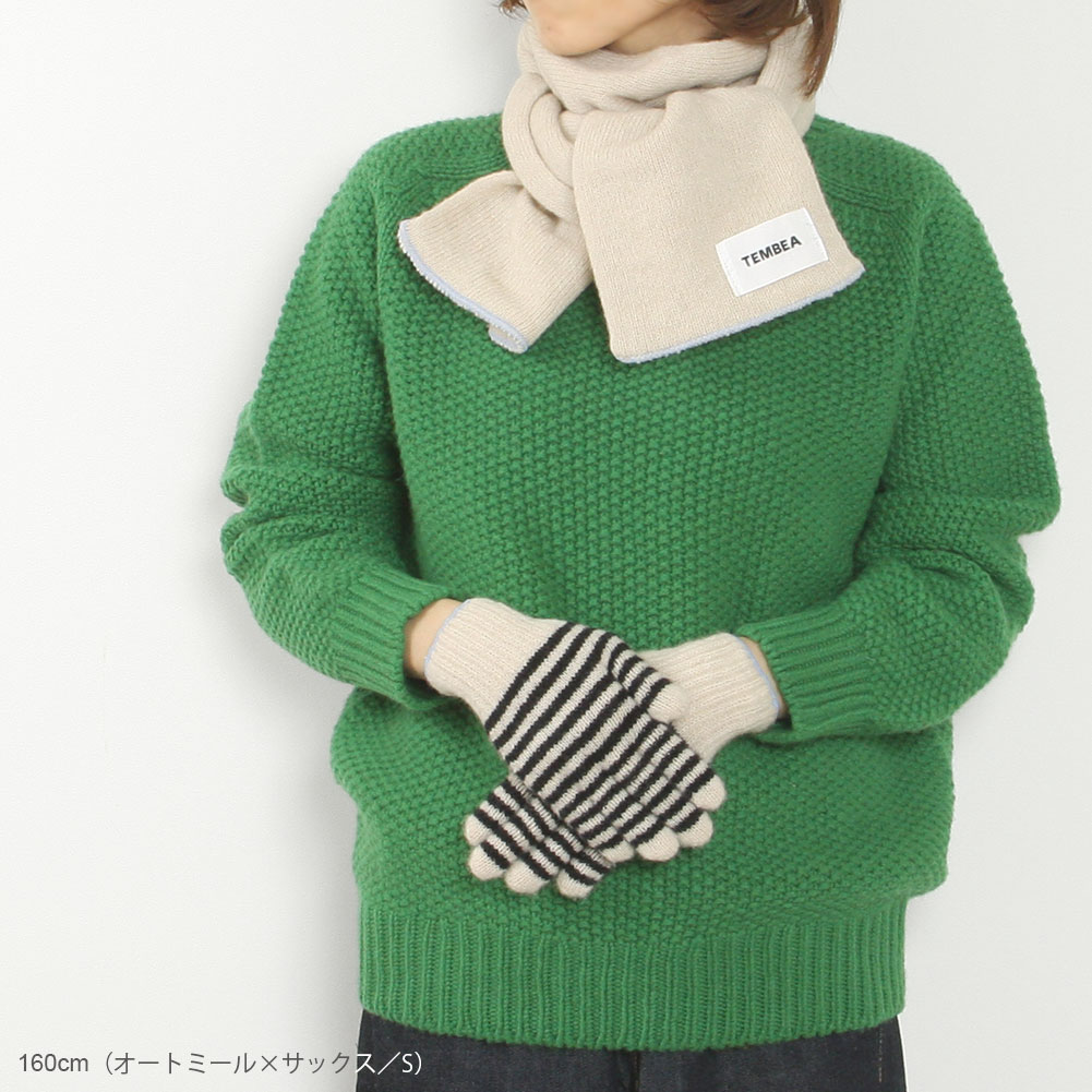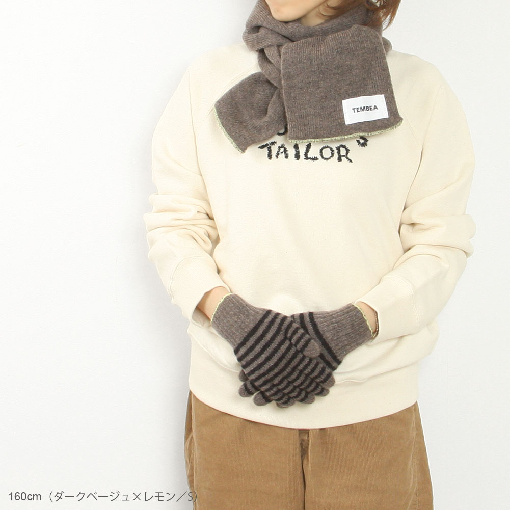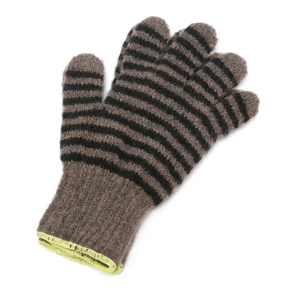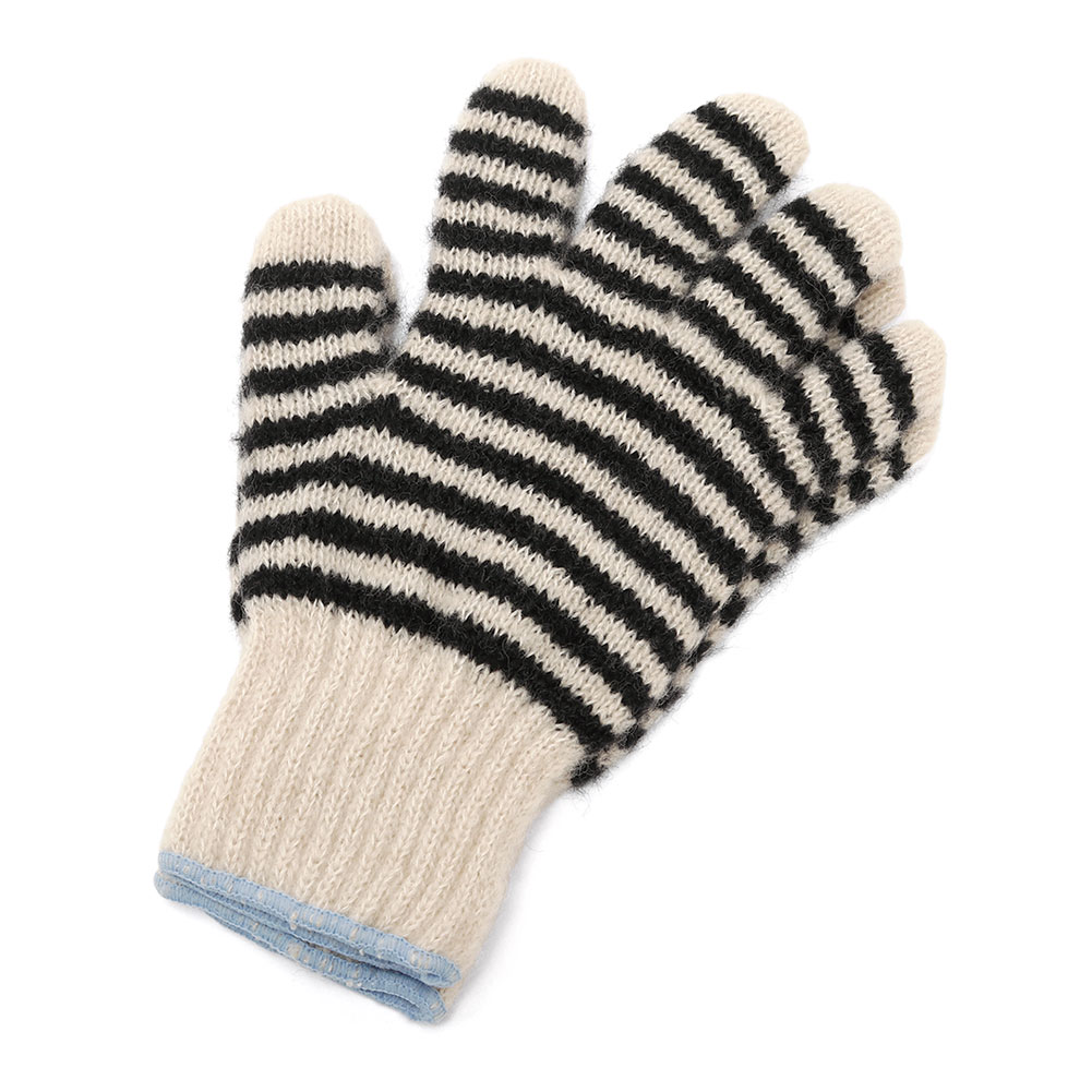 作業用の軍手と同じ編み機を使って作られたGUNTE。ピッチの細いボーダーと手首の刺繍のカラーが着こなしのアクセントになります。ウールがブレンドされた温もりのあるアイテムはギフトにもぴったり。Sサイズは女性の方におすすめです。左右差のないデザインです。