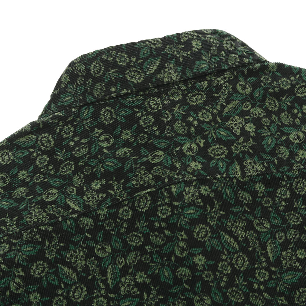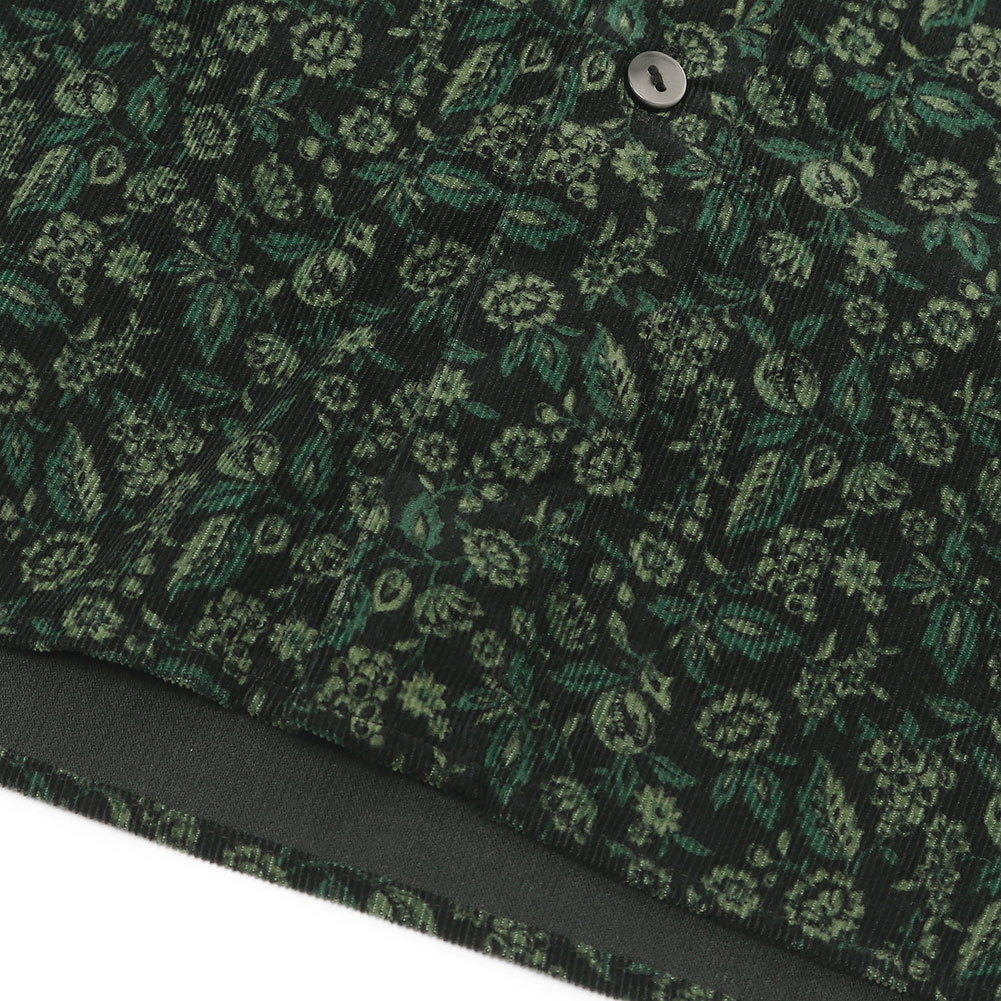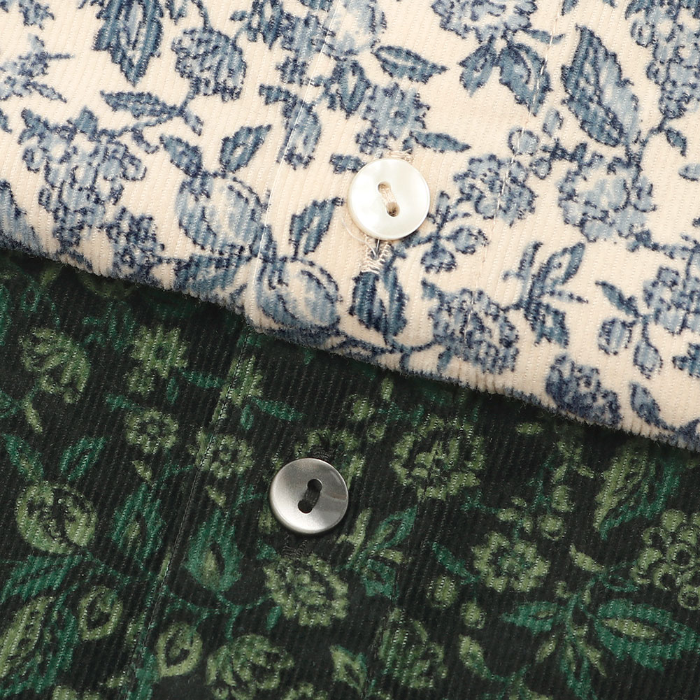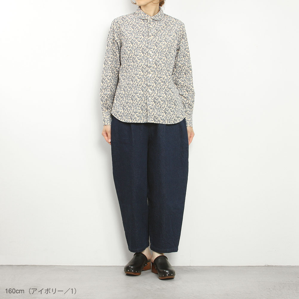 秋の果樹園をイメージしたオリジナルプリントのシャツ。小さめの襟や丸みのある胸ポケットが特徴、コンパクトなサイズ感が使い勝手のよいグランマ定番の形です。