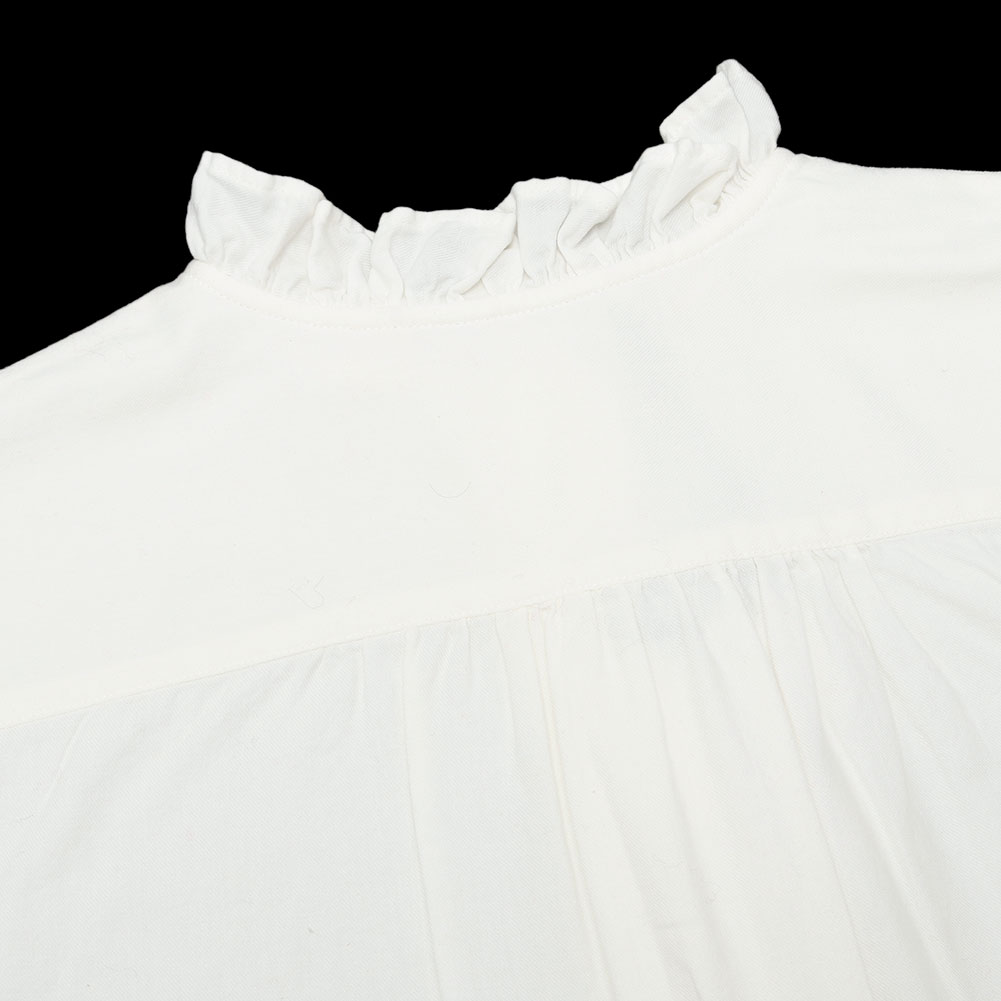 ゆったりとしたサイズが着心地良く、柔らかくて軽いウールが少し入ったコットンウールのビエラ生地を使用しています。