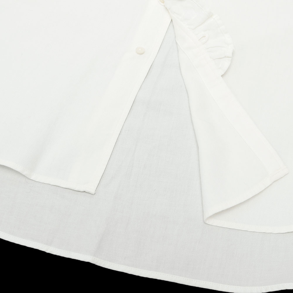 後ろ側が長めのヒップが隠れる着丈で、さらっと一枚でも、ベストやカーディガンなどとのレイヤードも素敵です。