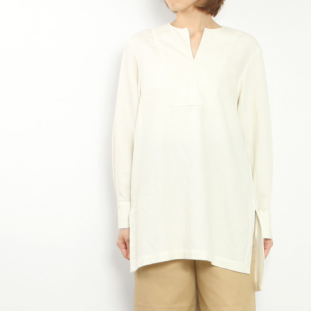 ネックラインがポイントになったプルオーバーブラウス。