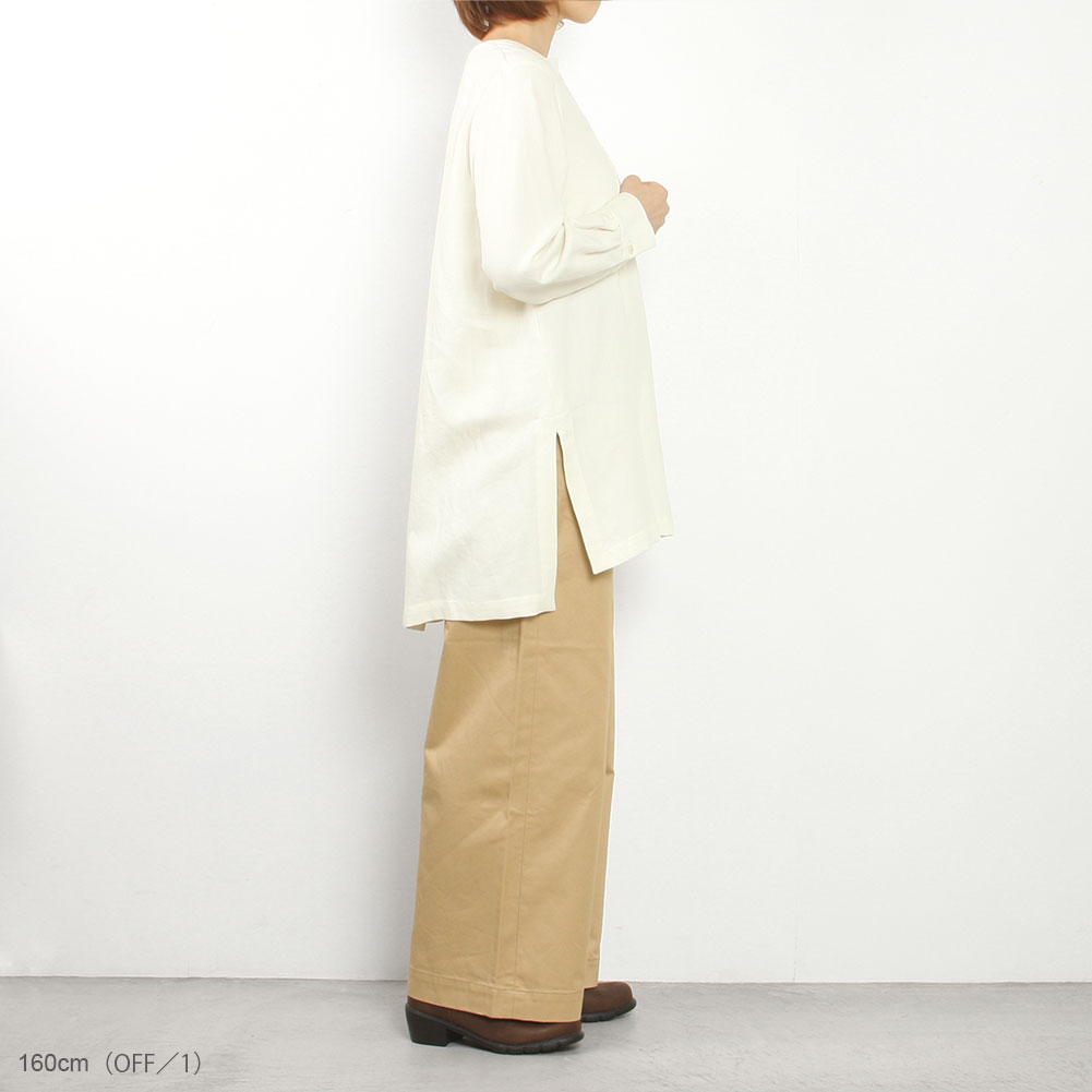 透け感はないので一枚で着られ、前後差のある着丈や深めのスリットがこなれ感を出してくれますよ。