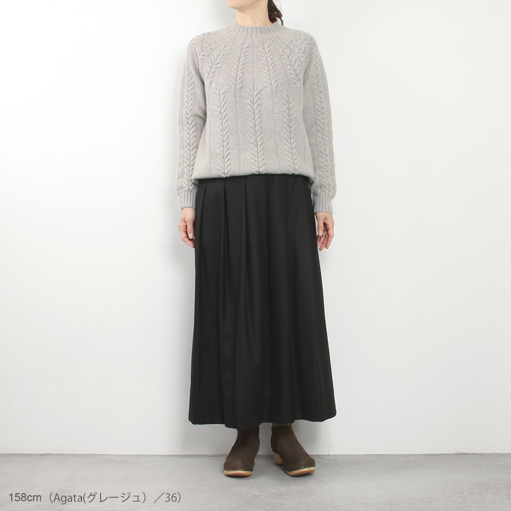 ラムズウールを使用しているので程よい肉感と、柔らかさがあり温かい着心地の良いニットです。上品で優しい雰囲気の1枚です。